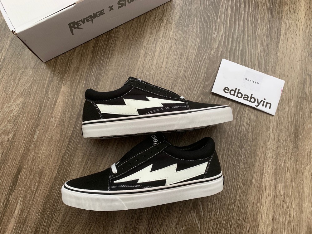 Limited time sale!! Buy before the sale is gone 100% Authentic Revenge x Storm Vans Original Classic Black Multiple Size 100% AUTHENTIC GUARANTEED ! Legit check is welcomed from any where. GOAT & StockX Power Seller. Please refer screenshot for reference. Shoes condition: Brand New with Box Real photos taken. Free feel to message if you have any questions. Package will be sent in the next business day. Size advice: Size is similar to VANS size.