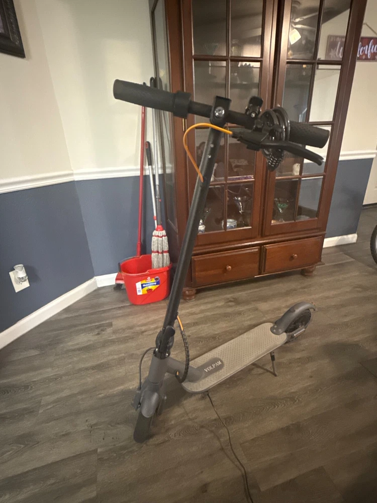 The VOLPAM Electric scooter features a powerful 350 Watts engine, with the option to upgrade to a 500 Watts engine. It is designed for adults and comes in a sleek black color. This folding scooter is perfect for outdoor sports and leisure activities. Limited time offer available.