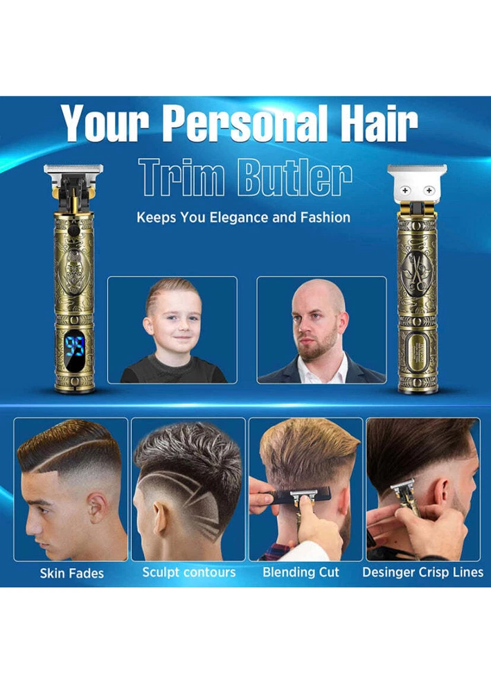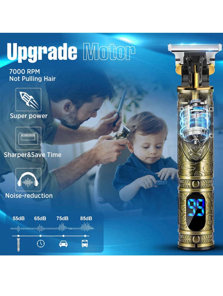 Features & details Premium Titanium Blades: Mens hair clippers designed for smooth, quick, and precise clipping performance on all types of hair with high quality long lasting high-carbon enhanced self-sharpening precision premium titanium stainless T-blades, The tip part adopts safe R outlineing obtuse angle design, the professional edgers clippers satisfy any styling needs,such as lining, sculpt contours, and dry shaving. Incorporated LCD Screen: Our T outliner hair clippers for men with Incorporated LCD Screen can display the power in real time and provide timely charging reminders, for a superior clipping experience. Our multifunctional grooming trimmer can also be used as a facial, beard and body hair trimmer, providing a comfortable grooming experience for men. Powerful Motor with Quiet Technology: Our professional men detailer trimmer is equipped with a powerful 10W motor, which can provide higher speed(6500-7000 rpm) and long-lasting using time. The electric trimmer motor is very quiet (55dB) while delivering a smooth and effortless clipping in no time. It's not only suitable for men, but also suitable for children and pets. Large Capacity Battery: The cordless zero gapped trimmers with built-in 1500mAh rechargeable battery. It only takes 2 hours to fully charge with USB cable and provides up to 180 minutes of working time. The long-lasting cordless hair clipper is very suitable for the barber and the whole family. Please fully charge it before using it for the first time (99 means full charge). Ergonomic Design: The Hair Trimmer weight only 190g and is 1.69 * 6.02in, fit for both men and women ’s hands. T-shaped blade, perfectly engrave the hair lines you want, to be a fashionable stylist for yourself. Our electric pro li outlineing clippers Bladed is waterproof IPX4, t outliners head washable and durable to use. Please wipe clean and keep dry after watering.