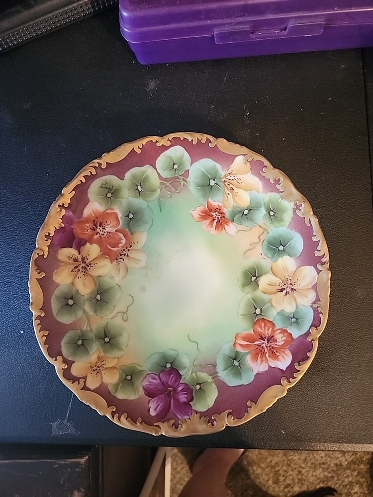 The product is an 8.5-inch collector plate featuring a hand-painted design from Limoges, France. Made of porcelain and manufactured in the early 1900s, this Victorian-style plate showcases a multicolor floral theme, reflecting the French culture and vintage charm. Perfect for all occasions, this decorative collectible adds a touch of elegance to any collection or home décor. Created by T & V Limoges, this piece highlights the craftsmanship and artistry of the renowned Limoges pottery tradition.