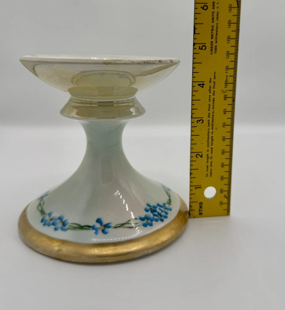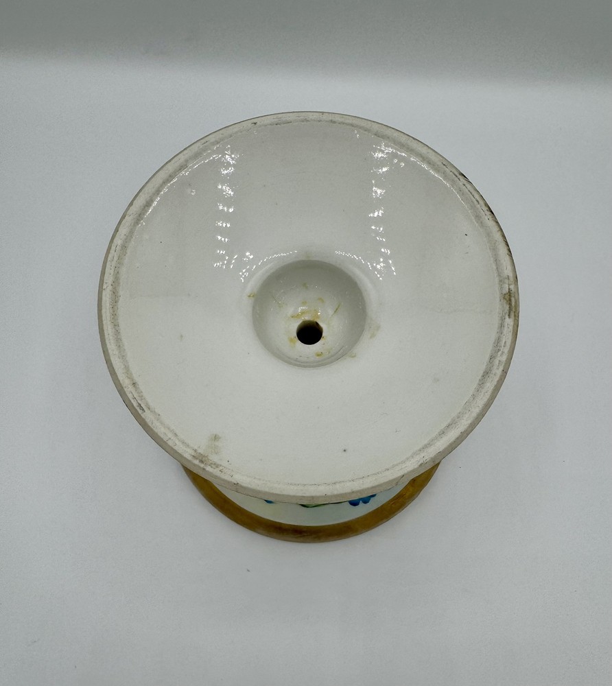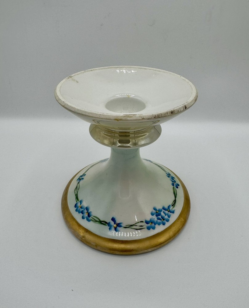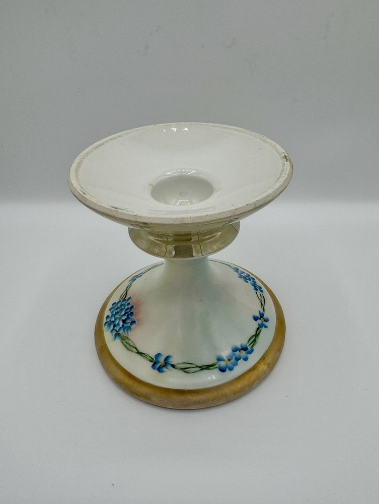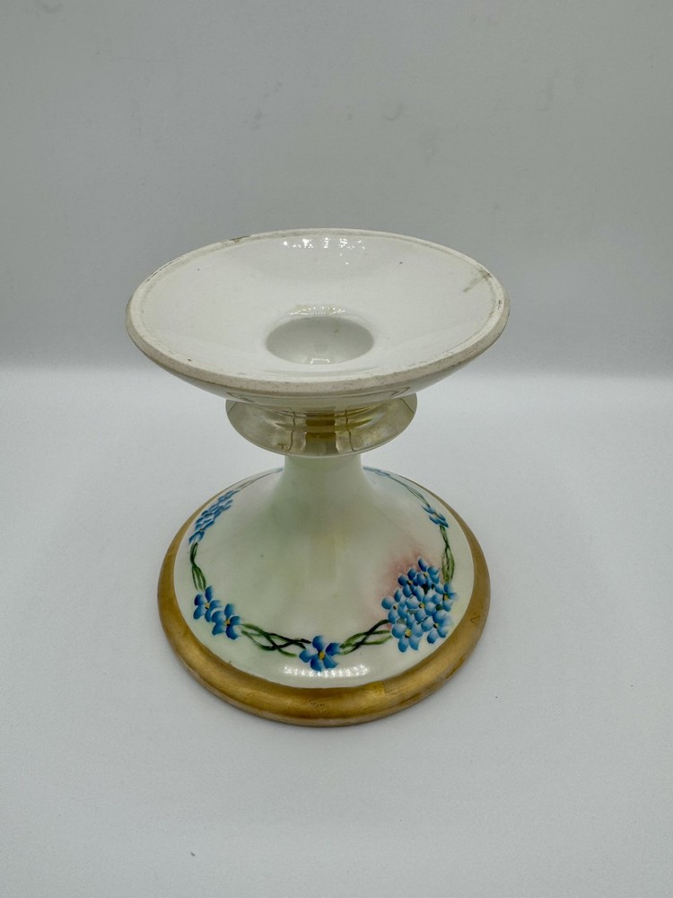 Limoges France Hand-Painted Floral Candlestick with Gold Trim 4.75 Inch