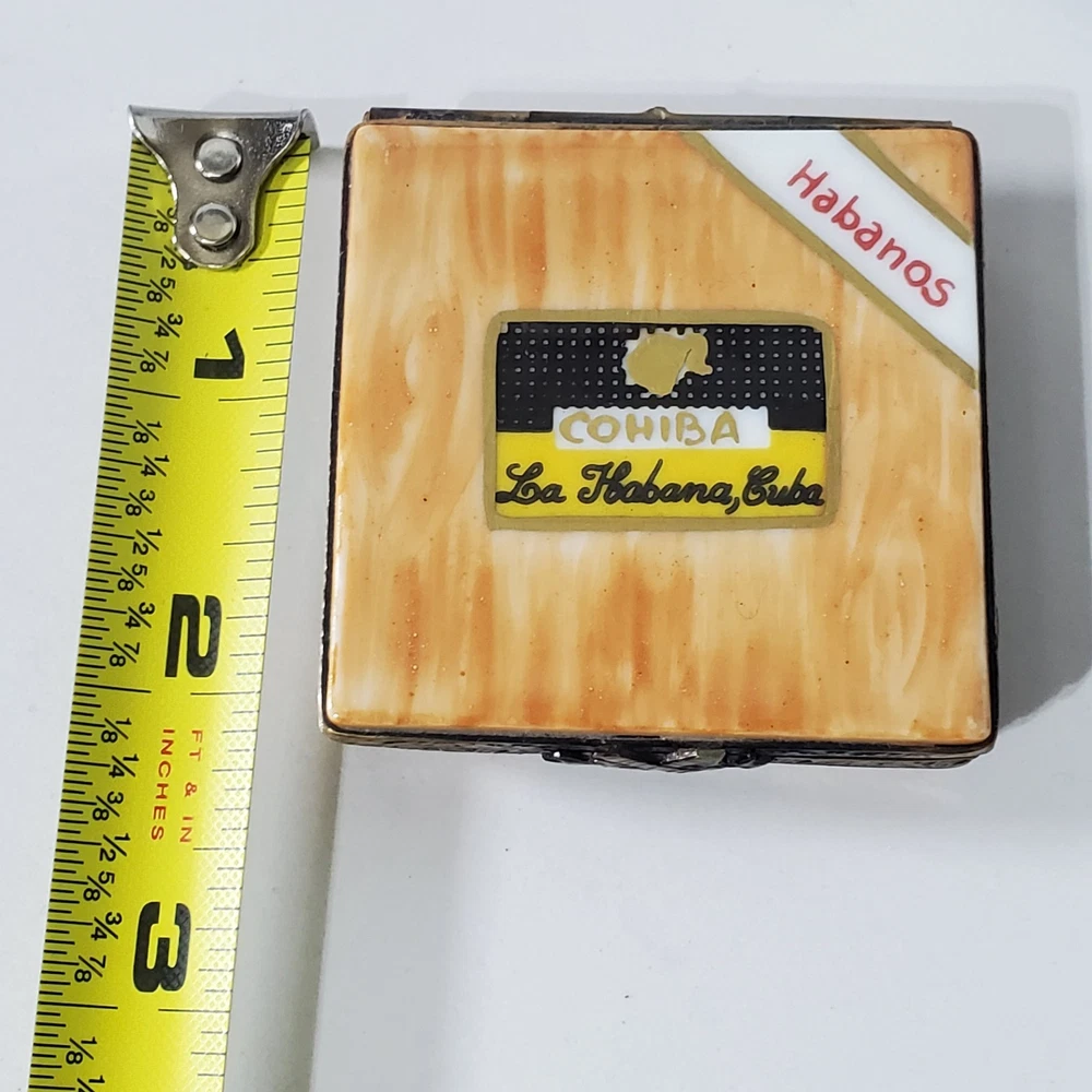 Limoges Imports Peint Main France Porcelain Trinket Box Cohiba La Habana Cuba Cigar Hand painted In good condition No chips or breaks Please view all photos for condition and measurements Thank you for viewing our products. PRODUCT SOLD AS IS. Please Message With Questions Prior To Purchase. If you have an issue with any of our items please reach out to us prior to contacting eBay. Thanks! Please note: We do sell new and used items. Our used items are pre-owned / pre-loved & may show signs of wear. Please view all photos for details, size, & imperfections as they are a form of the descriptions in addition to what is stated in the description section. We will do my best to inspect each item to find the best quality items possible. We do not include/replace batteries in any of our items unless they have been supplied by the manufacture and are in new unused condition. If an item is sent to you NEW / SEALED and you open it or remove the tags, it is NO LONGER ELIGIBLE FOR RETURN. Opened items / Removed tags - Means the item is NO LONGER in its original state and can no longer be sold as NEW. -Thank you for your understanding We are often asked about shipping cost. We are excited about your purchase and take pride in your package arriving to you undamaged. We wrap and cushion all necessary items prior to shipping which adds weight to your package. Unfortunately, this is not optional. Thank you for your understanding. We do not accept returns or issue refunds however in the event we do accept your return or issue a refund we do not reimburse your original shipping fee. Due to how eBay handles international shipping we do not accept any international returns. Thanks again!