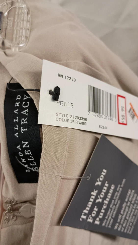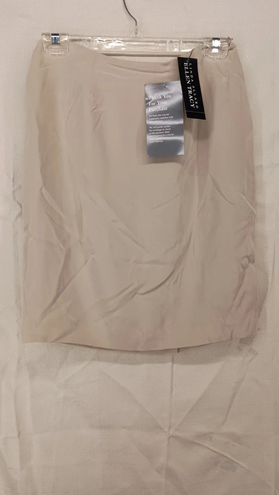 The product is a petite size 8 skirt designed by Linda Allard for Ellen Tracy in a beautiful driftwood color. This A-line skirt is knee length and made of silk, giving it a luxurious and elegant appeal. With the original price tag of $165 still attached, this new with tags (NWT) skirt offers a sophisticated addition to a woman's wardrobe, perfect for various occasions and events. Thank you for visiting my listing today and thank you for your interest in this item! My goal is to have a pleasant transaction resulting in a satisfied customer. I hope any transaction between us leaves you with a feeling of confidence knowing you can trust me and the items I offer here. *Most if not all my listings are set to accept offers. Feel free to send an offer and I will be happy to consider it!! *Please contact me with any questions or concerns and I will be happy to help. *Always examine the photos carefully, and if in doubt, email me with any questions you may have. *Please note that condition statements are offered as a guide only. They will always be somewhat subjective and reflect our opinion, which may not necessarily agree with someone else's opinion. PLEASE READ: I aim to please and I want my buyers to have a positive transaction with me. If you have questions, concerns, or special requests related to any of my items I hope you will contact me so we can work them out to your satisfaction. I sell my items to give you a great item at a decent price while making a little profit at the same time. If you feel the item you are interested in is too pricey do not hesitate to send me a fair offer and I will consider it. My goal is to satisfy your needs and mine so both parties can benefit. SHIPPING: If you prefer a different shipping method or company please contact me and I will do all I can to make that happen. If you have concerns or requests about the packaging of your item contact me and I will do all I can to accommodate them. Shipping costs are based on location in each state or country, the costs always differ. After I have received your payment I will ship your item out within 3 business days or less excluding weekends and holidays. BEFORE PURCHASING & BIDDING: **Please see all the pictures. I do not have great photography skills but I try to get the most accurate photos I can. If you are unsure about something you see in a photo contact me so I can do what I am able to answer your concern about the item. **I cannot stress enough that if you have any questions or concerns please contact me before purchasing and bidding. Communication can solve so much. **As a customer myself, I understand the meaning of customer satisfaction and my goal is to have nothing but satisfied customers. If you are not unsatisfied with your purchase I ask that you please contact me so I can take care of your issue. My goal is for you to be 100% satisfied. INTERNATIONAL BUYERS WELCOMED - PLEASE NOTE: I welcome International buyers! Please be aware that any custom/duties/taxes that the parcel might incur once it is out of the USA are the responsibility of the buyer. Please check with your country's customs office to determine what these additional costs will be prior to bidding or buying. Please refer to the eBay Site Map for more information if needed.