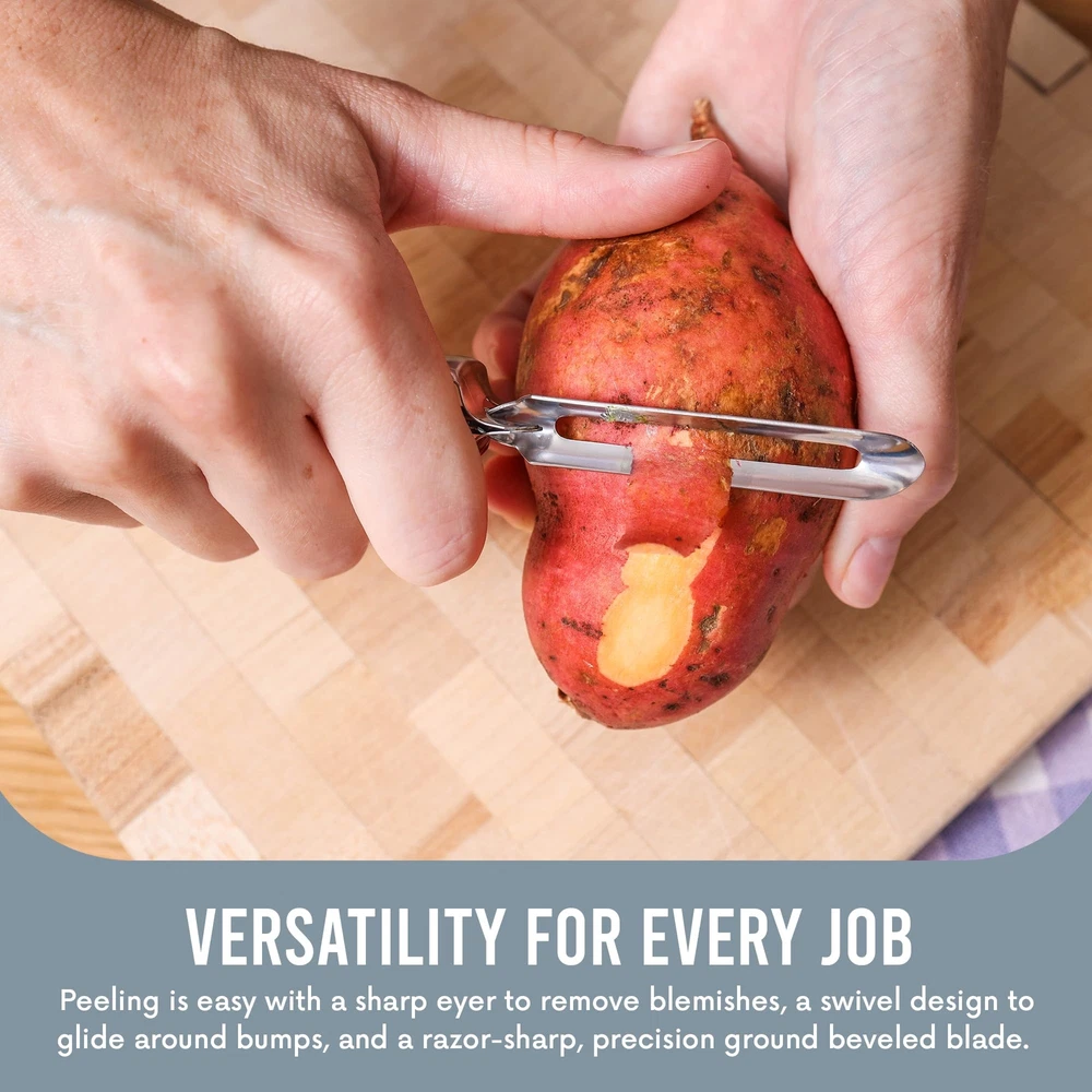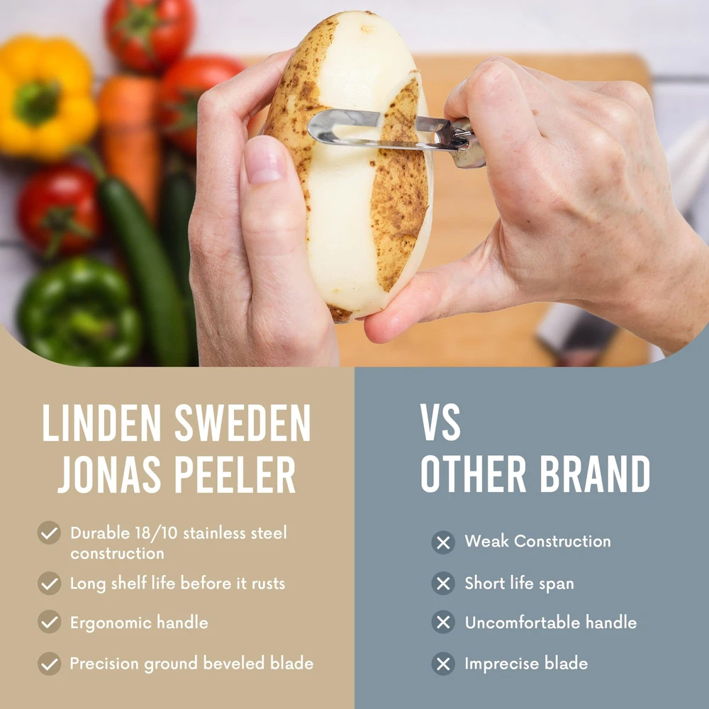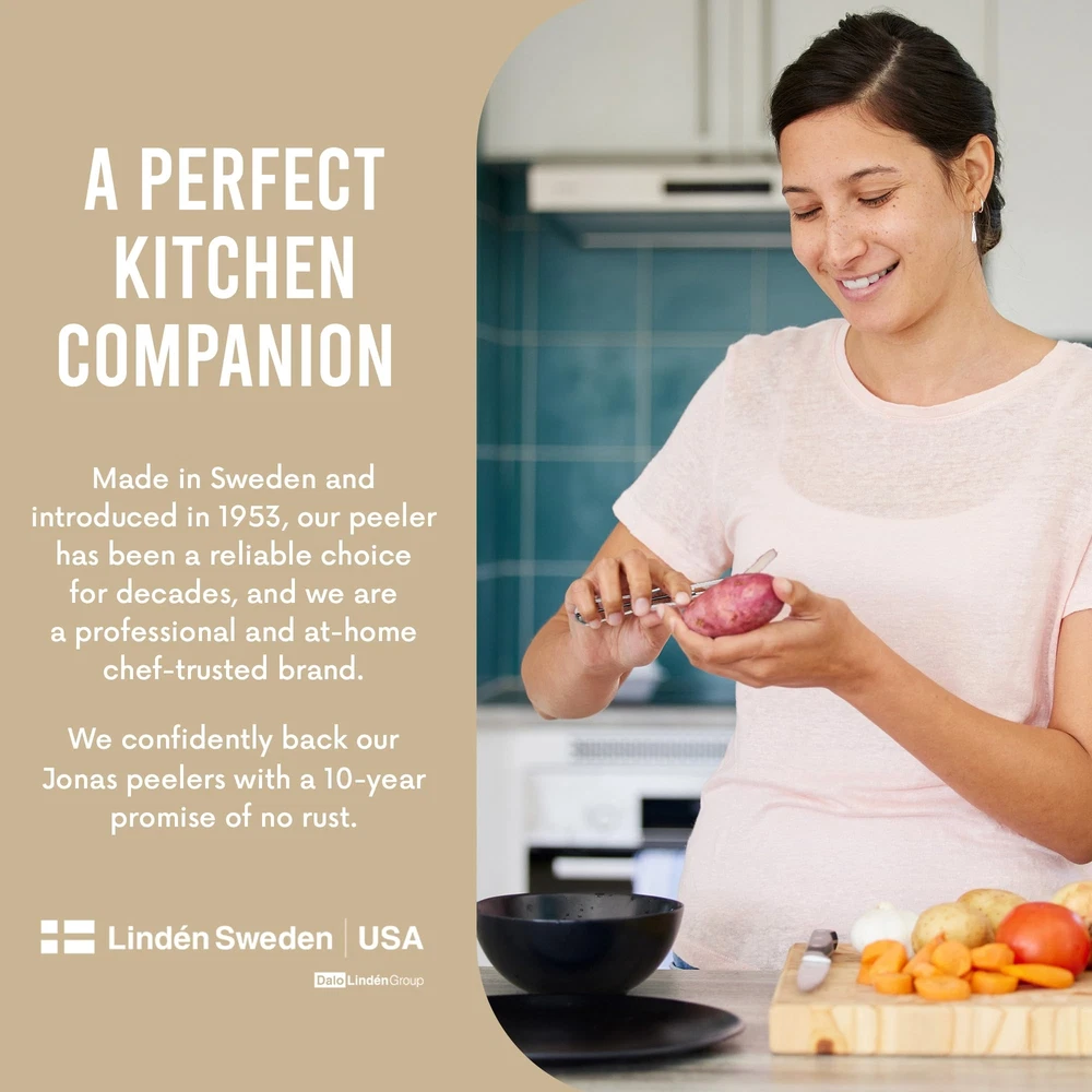 Linden Sweden Original Jonas Vegetable Peeler - Rust Resistant Silver Potato Pe Features: Faster Food Prep: A time-saving must-have in every kitchen, our carrot peeler handles everything from soft fruits to dense vegetables! Razor-sharp blades produce a thin and even peel, while our precision ground swivel design glides around bumps and grooves. Safer, More Comfortable Peeling: With a slim, ergonomic handle that fits in the palm of your hand, our fruit peeler offers total control as you work! Great for left and right-handed users alike, it’s a safer and practical alternative to peeling with a paring knife. No-Hassle Cleanup: Bulky, hard-to-clean kitchen products take the fun out of cooking. But because it’s safe in the dishwasher, our peeler couldn’t be easier to clean! At only 6.5” in length, it occupies minimal drawer space for effortless storage and organization. Made in Sweden: Made with premium 18/10 stainless steel, our kitchen peeler delivers the strength and durability that Linden Sweden products are famous for! As an added bonus, its stylishly sleek, modern design is a seamless match to every kitchen’s décor. Rust-Resistant: The stainless steel blade is rust-resistant, ensuring it remains clean, sharp, and hygienic for years of daily use. The Jonas Peeler is a favorite among both professional chefs and home cooks for its unmatched performance and reliability. Features: Faster Food Prep: A time-saving must-have in every kitchen, our carrot peeler handles everything from soft fruits to dense vegetables! Razor-sharp blades produce a thin and even peel, while our precision ground swivel design glides around bumps and grooves. Safer, More Comfortable Peeling: With a slim, ergonomic handle that fits in the palm of your hand, our fruit peeler offers total control as you work! Great for left and right-handed users alike, it’s a safer and practical alternative to peeling with a paring knife. No-Hassle Cleanup: Bulky, hard-to-clean kitchen products take the fun out of cooking. But because it’s safe in the dishwasher, our peeler couldn’t be easier to clean! At only 6.5” in length, it occupies minimal drawer space for effortless storage and organization. Made in Sweden: Made with premium 18/10 stainless steel, our kitchen peeler delivers the strength and durability that Linden Sweden products are famous for! As an added bonus, its stylishly sleek, modern design is a seamless match to every kitchen’s décor. Rust-Resistant: The stainless steel blade is rust-resistant, ensuring it remains clean, sharp, and hygienic for years of daily use. The Jonas Peeler is a favorite among both professional chefs and home cooks for its unmatched performance and reliability. eBay integration by