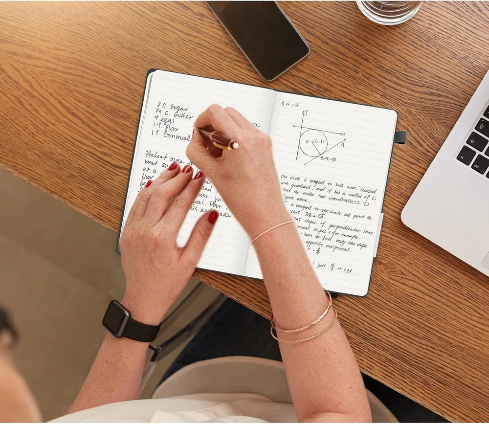 Lined A5 Journal Notebook, 200 Pages, Leather Cover, Office School Use, Grey
