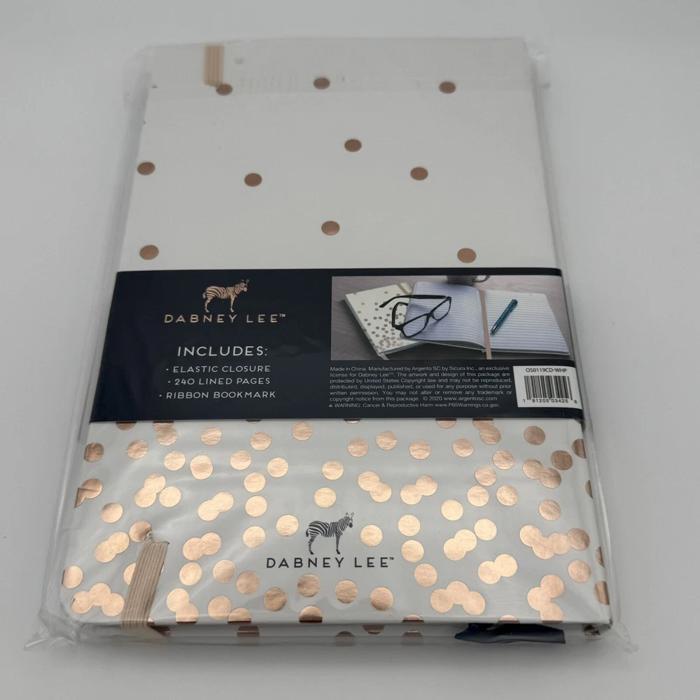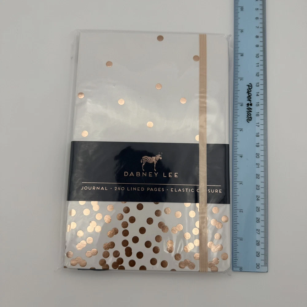 Lined Journal 8.5" x 5.5" Rose Gold Dot By Dabney Lee (Hardcover) NEW This is a lined journal measuring 8.5" x 5.5" with a rose gold dot design by Dabney Lee. It features a hardcover for durability and comes with a ribbon bookmark. The journal is new and perfect for writing or note-taking. Includes 240 lined pages and elastic closure. Makes a great gift! ---------------- Smoke-free home. Items stored in cool, dry space. Please see photos for best description of the item’s condition. All photos are of the actual item listed for sale. We do our best to provide proper photos and descriptions of the items to insure there are no surprises once received. We will ship your item within 1-2 business days of purchase. Thank you for shopping Declutteringo!