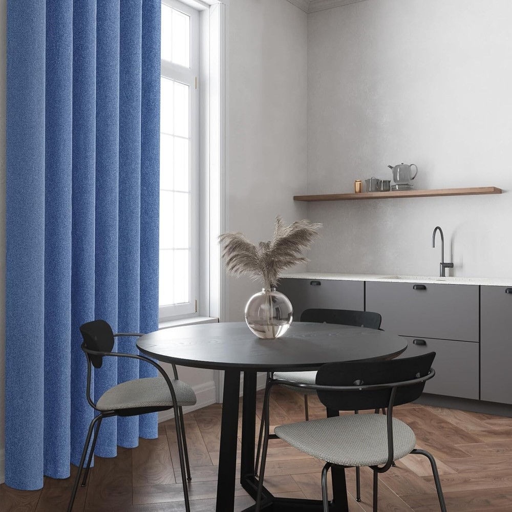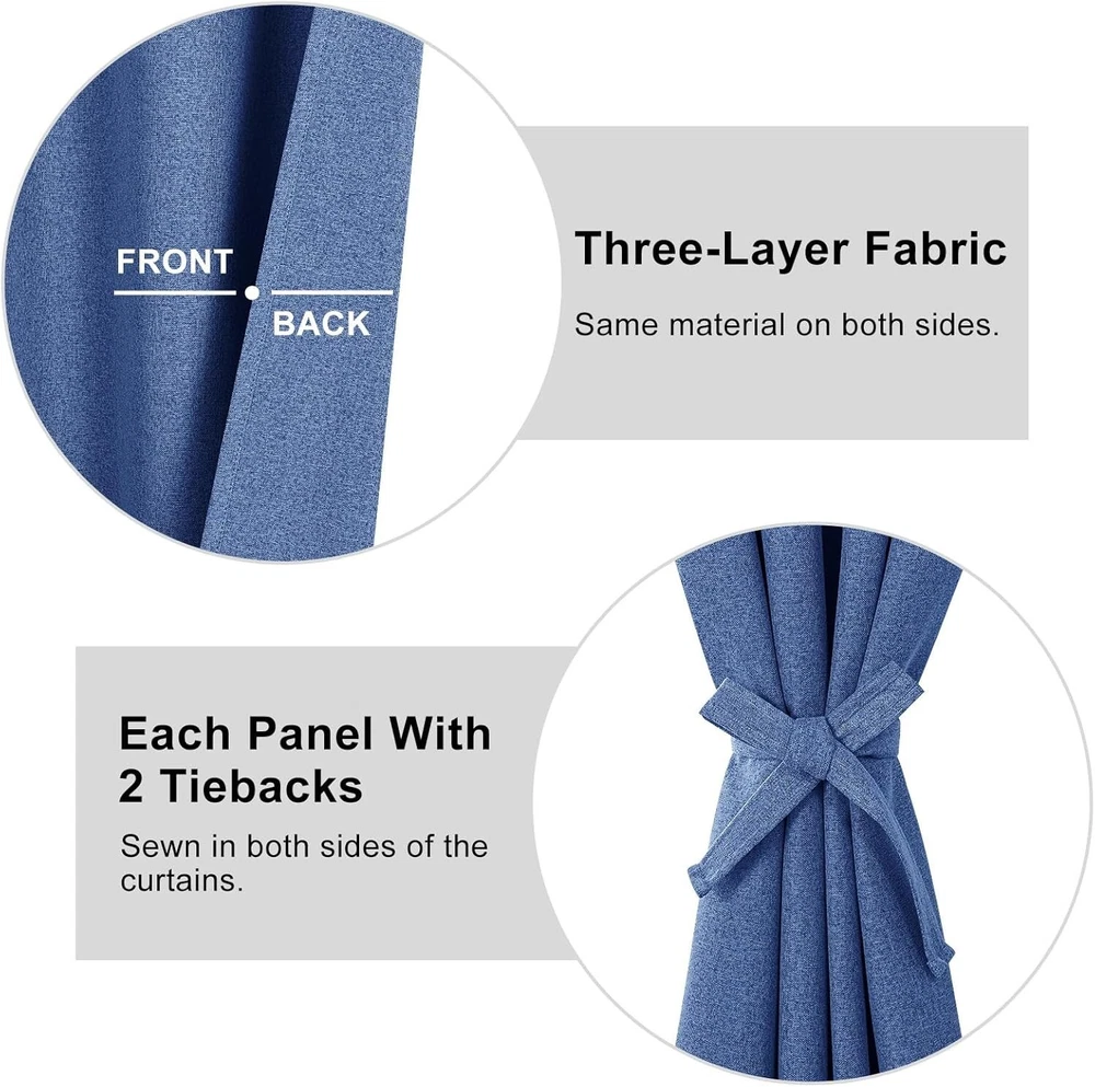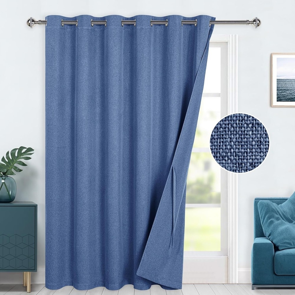 Linen Curtains 100 Inch Wide Room Dividers, 100% Blackout Patio Door Curtain 108 Inches Long, Extra Wide Thermal Curtain for Living Room - 100W x 108L Inch, Navy Blue, 1 Panel PACKAGE INFO: For each packing, there will be 1 panel inside. Each contains 1 faux linen curtain in size 100W x 108L, equipped with 12 standard silver grommets with inner diameter. BETTER SLEEPING EXPERIENCE: total blackout curtains adapts 3-layer combined fabric, 2 outside layers are linen look and the middle layer is 100% blackout fabric. For doing so, it can block UV ray, creating a great environment for lighter sleepers/ night workers/ babies, which enable them to sleep through the night. UPGRADED COMFORT: tieable curtains are various in sizes and in colors. Both sides of curtains look same. Those linen blackout curtains are good at thermal insulation, keeping your room warm in winter while cool in summer. Our curtains are suitable for bedroom, living room, office, kitchen, baby room, study room and so on, especially for farmhouse style. TIEBACK DESIGN: Both 2 panels are separately sewn with a tieback, so that you can tie them up without purchasing any other ropes and let sunlight in whenever you want to. They are fixed in curtains, and uneasy to loose. MACHINE WASHABLE:For a better purchasing experience, please wash in cold water, tumble dry on low and ironing at low temperature (if needed). Don’t bleach. Any other questions, do not hesitate to contact me. Add a little beauty to life.