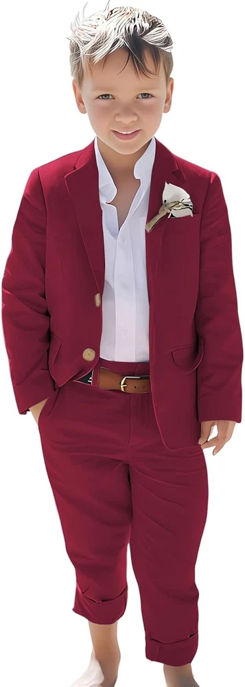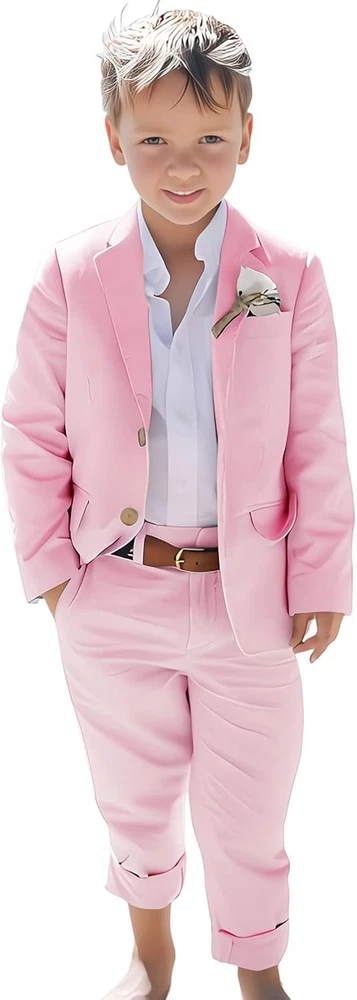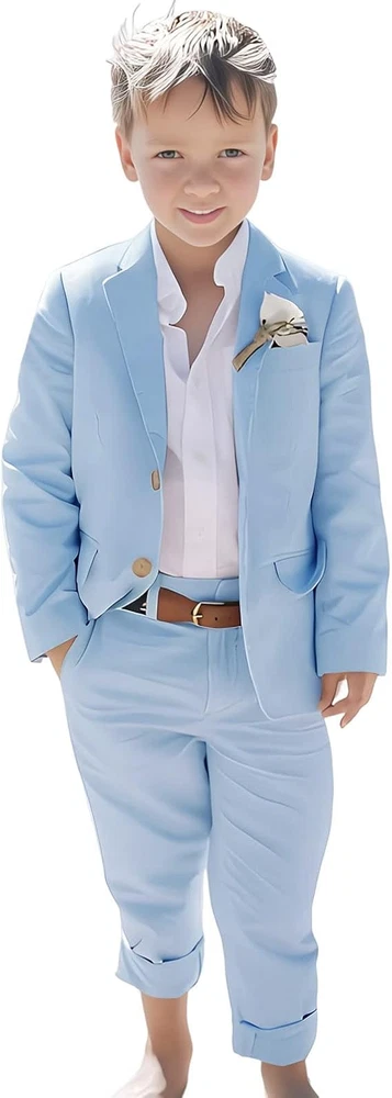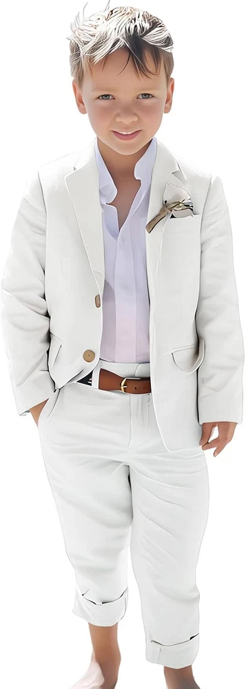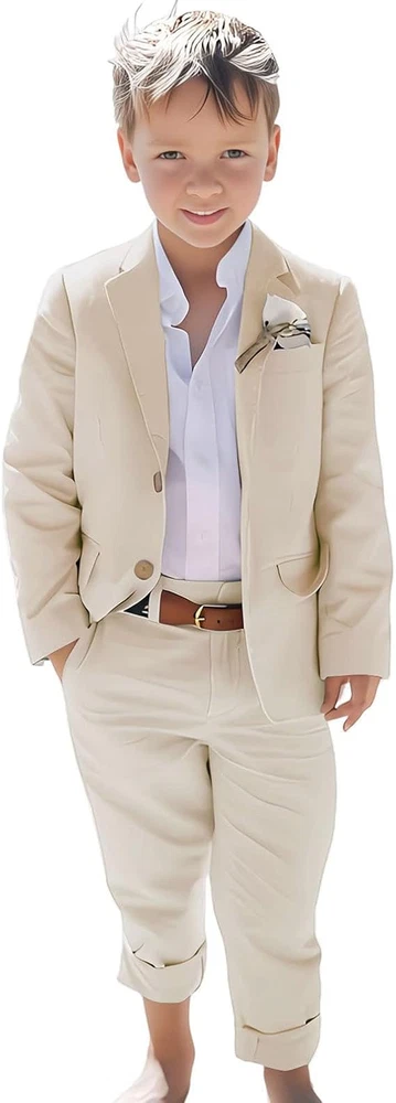 Linen Boys Suit Beach Wedding Suit Summer Slim Fit 2 Pieces Kids Suit Pants