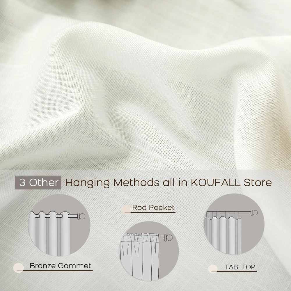 is a certified curtains manufacturer for 15 years in traditional business supplying supermarket and DIY stores.Our new mission is to offer same qualified products online directly to save your budget with highest standard . Fabric:Uniquely blended woven of 20% flax linen plus 80% polyester.Unlike primitive 100% linen fabric being too stiff and skin unfriendly,polyester helps on fabric soft,easy wash and free but linens still keeping organic speck aesthetic from nature. Light Filtering & Semi Transparent: These curtain panels are sheers but with substantial texture and weight. Simple but Decent Decor: Soothing and softly muted, the curtains add timeless classic and sophisticated neutrals to a room, looking equally good in formal and informal spaces, creating a casual, crisp and fresh aesthetic look. Package Includes: 2 LINEN PANELS, sold per pair. Easy Care: Machine washable in cold water, do not bleach, tumble dry low, iron on lowest setting if needed. Easy use of easy care.
