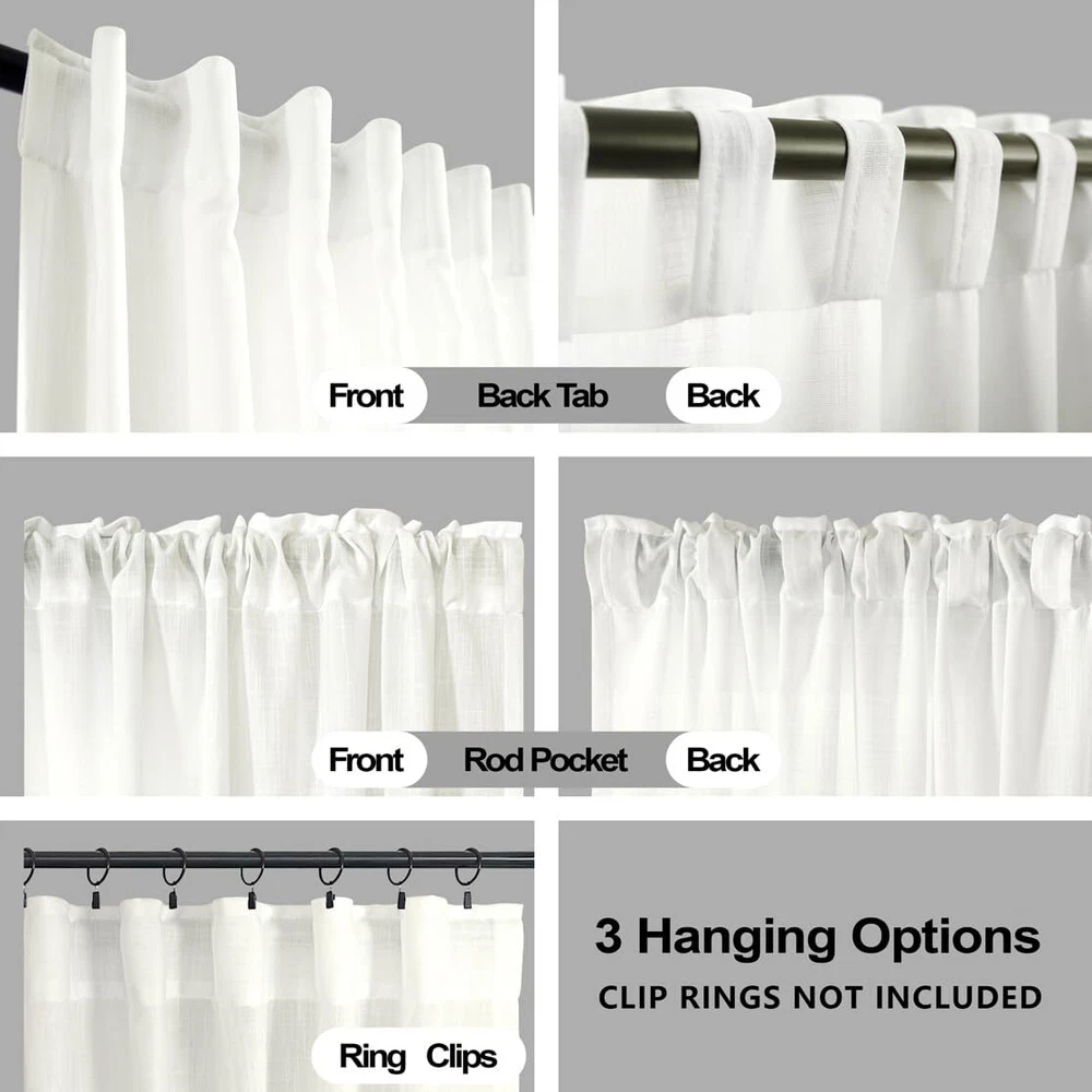 Linen Sheer Curtains 63 Inch Length for Living Room,2 Panel Set Semi Sheer Li...
