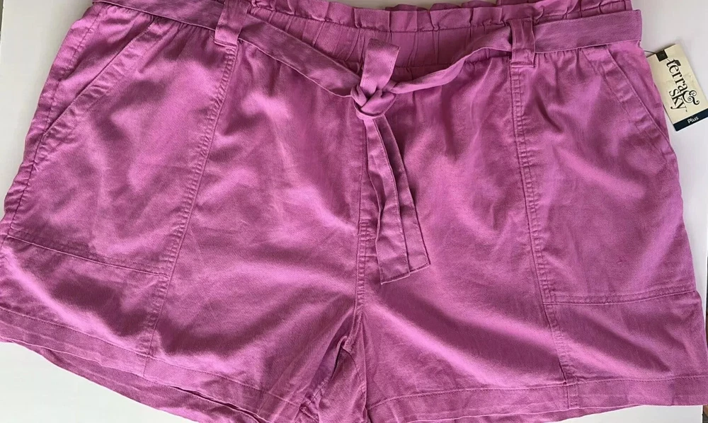 Two kind of shorts: Photos 1 to 7: size XXL and XXXL, 2 in stock. White with thin black lines, pockets crafted from a luxurious linen blend with rayon, these shorts feature a smocked waist for a flattering fit. The white and black striped design adds a touch of sophistication to any outfit. These shorts are perfect for any occasion. Photos 8 to 15: Size XXL, 1 in stock Color: Orchid Bloom, pocketsThe relaxed fit and elastic waist , pull on provide ultimate comfort, while the cotton material offers a soft and breathable feel,loose fit totally comfortable! Beautiful color! 3 in stock: 2 white and black striped sizes XXL and XXXL. 1 Orchid Bloom Size XXL. Please specify the want you want, thank you! Price is for 1.