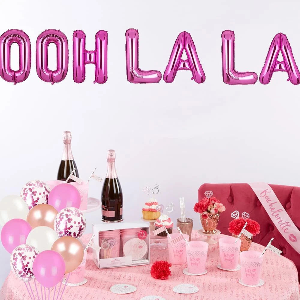 Lingerie Party Decorations Pink Lingerie Ooh La La Balloons Lingerie Shower Decor for Bridal Shower/Bachelorette/Slumber Sleepover/Spa Ladies/ Girls Night Party Supplies Decorations Ooh La La balloons are great to decorate for bachelorette party, girls night party, spa ladies party, lingerie party, slumber sleepover party, etc Try hanging from the window, room, branches and ceilings, dessert tables, party background, the adornment of the integral collocation of color is also a very perfect place you want to decorate. Package includes: Independent 16inch "OOH LA LA" Letters Foil Balloons 1pc 30''x26" Red Lip Balloon 1pc 49''x18'' Lipstick Balloon 1pc 42" x 20" Champagne Bottle Balloon 1pc 3.28 X 6.56ft Pink Metallic Fringe Curtains 40pcs 10inch Latex balloons(each colors 10pcs) 2 straw for inflating balloons 2 string for hanging balloons Service Guarantees: Any questions, please contact us, we will reply to you in 24 hours. We must try our best to improve our service and product quality. Application: Ooh La La balloons are great to decorate for bachelorette party, girls night party, spa ladies party, lingerie party, slumber sleepover party, etc, it will offer you an unforgettable experience Easy Assembled: All the balloons are easy to assemble. All you need to do is use the straw in the package to blow up the balloons(use a pump would be faster). Note: Letter balloons can not float with helium Size: Each letter balloons Size: 16", Champagne Bottle Size approx is 42" x 20", Red Lip Balloon Size: 30''x26", Lipstick Balloon Size: 49''x18'', Pink Metallic Fringe Curtains Size: 3.28X6.56ft, Latex Balloons: 12" Decoration: Suit for hanging from the window, room, branches and ceilings, dessert tables, party background, the adornment of the integral collocation of color is also a very perfect place you want to decorate Guarantee: We support perfect Amazon 24-hour after-sales service customer service support. If you have any questions about these decorations party supplies kits can contact customer service at any time Shipping from the USA All of our products are shipped from the USA, ensuring quick delivery to your destination. Payment We offer the following payment methods: PayPal, credit card, bank transfer, and eBay's secure payment system. Free Shipping & Free Returns Shipping within the USA is FREE. Additionally, any return is absolutely free for you. Risk-Free Purchase You have the option to return an item within 30 days without any justification. We cover the return shipping costs! Fast Shipping We ship immediately upon receipt of payment. Generally, the package is delivered within 2-3 days in the USA. If it takes longer, we will contact you. Quality and Costs Made in Europe, USA, China No customs fees or additional charges Total satisfaction guarantee Invoice with declared VAT available upon request in .pdf format Feedback Your feedback is very important to us. After you pay for your purchase, you will automatically receive positive feedback from us.