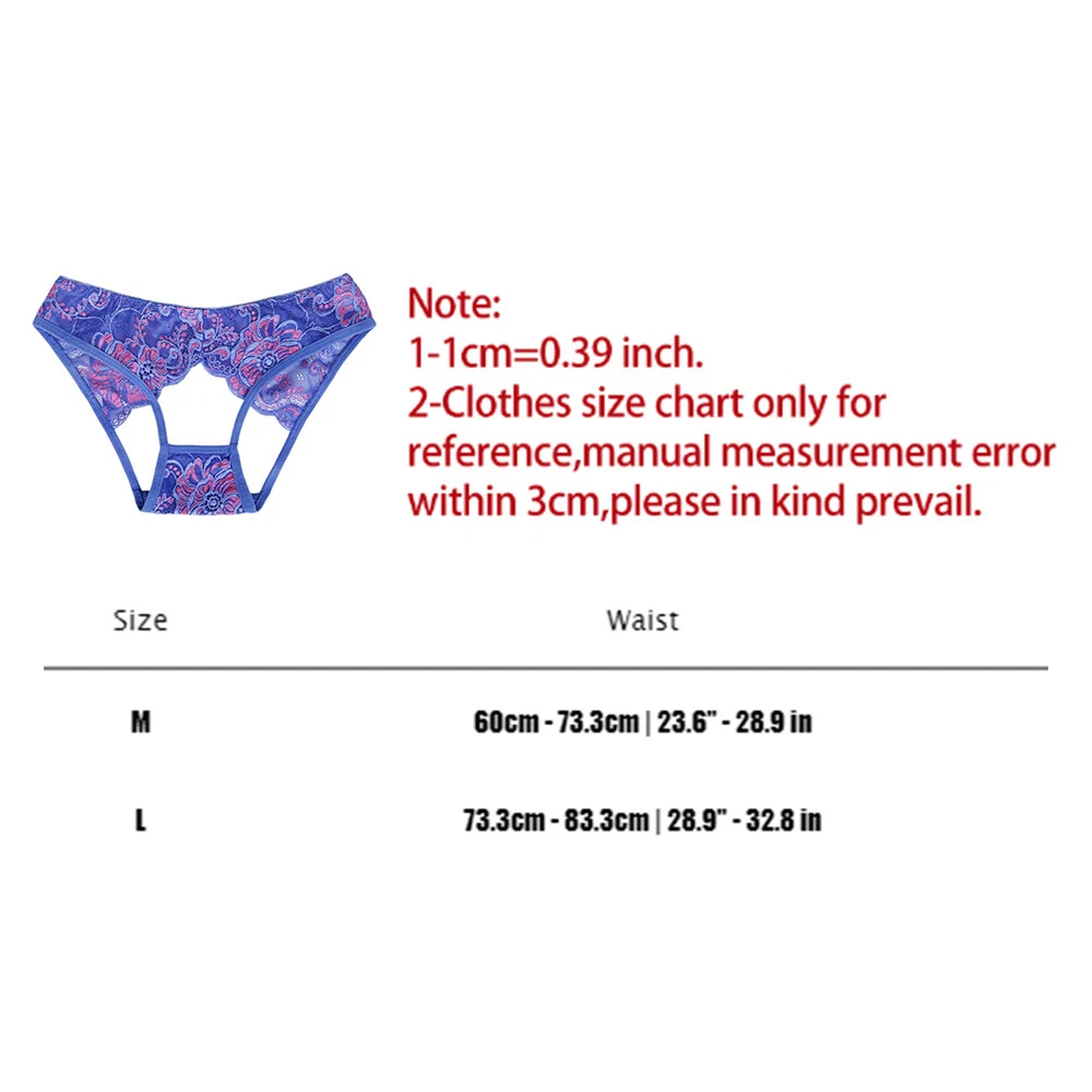 Package:1 pcs panty(Other Accessories are not included) Material:spandex Colors:white,blue,black,red,grey,dark pink,dark blue Size:M,L Pattern:Floral Waist Type: low Season:Spring,Summer,Autumn,Winter Garment:Hand washing or machine washing,line dry. Attentions: 1.The Real Object May Exist Slightly Colors Differences Compared To Images As Different Computers Display.Caution If Minding,Thanks. 2.There Might Be A Manual Measuring 1-3 cm Error.Sorry For Any Inconvenience. 3.Please Prevail On Real Item, Model Images For Reference Only. 4.Attention!!!Please check the size chart carefully before placing the order. Shipping 1.Please make sure your postal address is correct! 2.Normal shipping is 25-35working days,economy shipping is 35-55working days. Please contact with us if you can't get item over the time. 3.We can provide DHL Express Services , please feel free to contact us Returns 1. Feedback is VERY important to us. 2. We work very hard to exceed your expectations. We make our living by offering a quality product at a competitive price, all while offering the BEST customer experience in the industry. 3. We WILL leave feedback for you as soon as payment is received and hope you will take a moment to do the same for us. As important or more than feedback is the 5 star ratings. 4. If you are not satisfied with the item, please Contact Me before you leave me negative feedback, we will try our best to solve the problem to make you satisfied. Contact Us 1. Our work time is: 8:30 AM- 17:30 PM. In normal ,we will reply to you in time! 2.But we couldn't reply to you in time in holiday of our country's, please pay a big patience. However we will try our best to reply in 24hours!