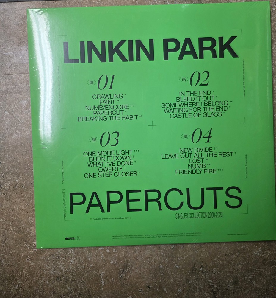 The Linkin Park - Papercuts Vinyl (Walmart Exclusive Dark Grey) is a limited edition double LP record featuring the band's singles collection from 2000 to 2023. This special release includes colored vinyl in a cardboard sleeve, making it a must-have for fans of alternative and rock music. With a speed of 33 RPM and a record size of 12", this collection is sure to impress with its high-quality vinyl and mint condition inlay and sleeve grading. Perfect for collectors and enthusiasts, this album is a unique addition to any music lover's collection.