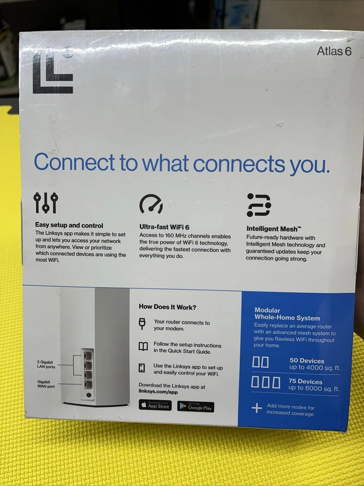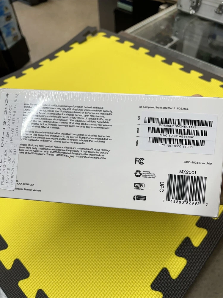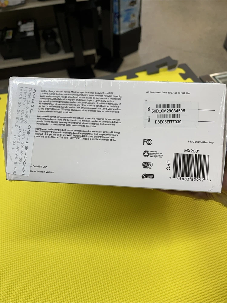 gtin13:0745883829927MPN:MX2001UPC:0745883829927Country/Region of Manufacture:VietnamBrand:LinksysMaximum LAN Data Rate:1000 MbpsConnectivity:Wireless-Wi-Fi 802.11ax, Wired-Ethernet (RJ-45)Ports:Ethernet (RJ-45)To Fit:PCModel:Linksys Atlas 6Number of LAN Ports:3Color:WhiteItem Width:9.5"Type:RouterFeatures:Dual-BandItem Length:8 1/4"Maximum Wireless Data Rate:1200 MbpsItem Height:4"