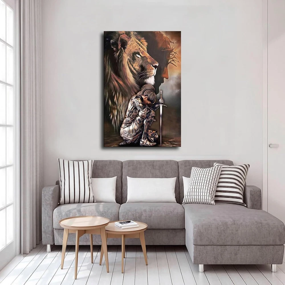 Lion Woman Warrior, Woman Warrior of God, Lion of Judah, Religious Poster Canvas