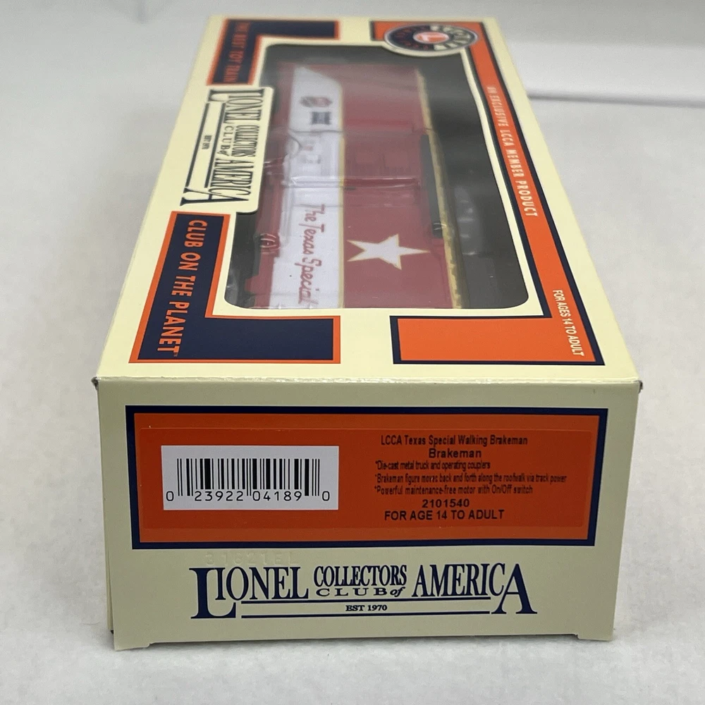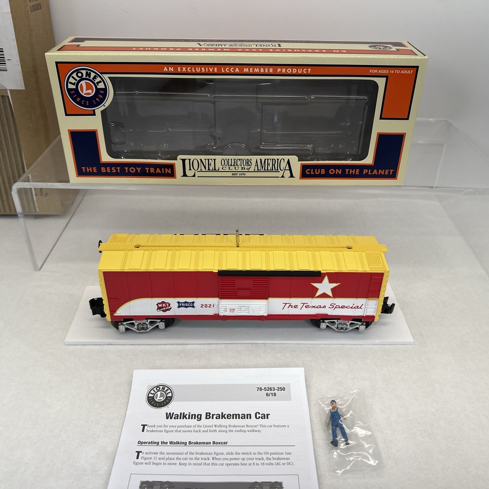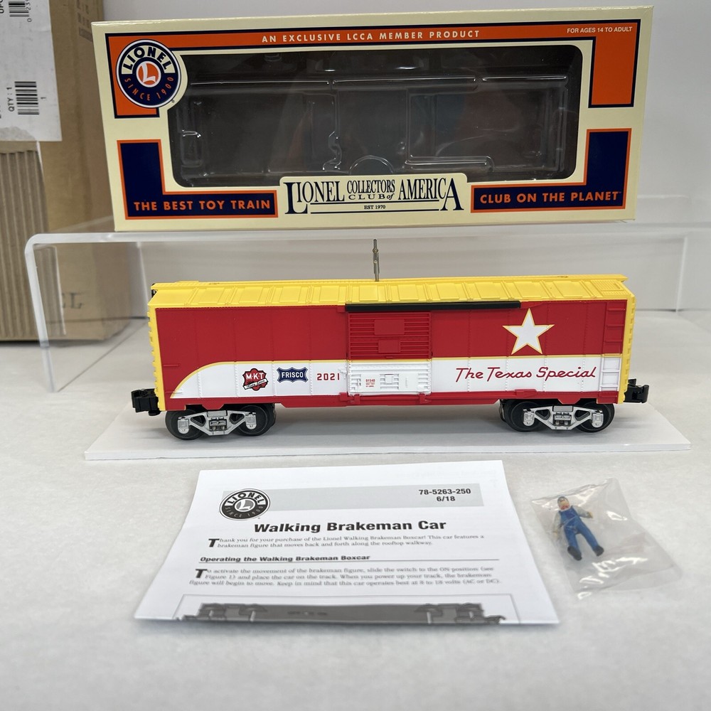 LIONEL (LCCA) LIONEL COLLECTORS CLUB OF AMERICA LCCA 2021 TEXAS SPECIAL WALKING BRAKEMAN BOX CAR THREE RAIL O GAUGE 2101540 NEW!! CLUB CAR. ORIGINAL BOX. SHIPPING BOX INCLUDED WILL BE PACKED TO ENSURE SAFE DELIVERY! Winning US bidder receives FREE SHIPPING USPS Priority UPS!! Canada Priority shipping is available . All other countries please email for a mailing quote. Thanks for looking! I ship everyday!!!!