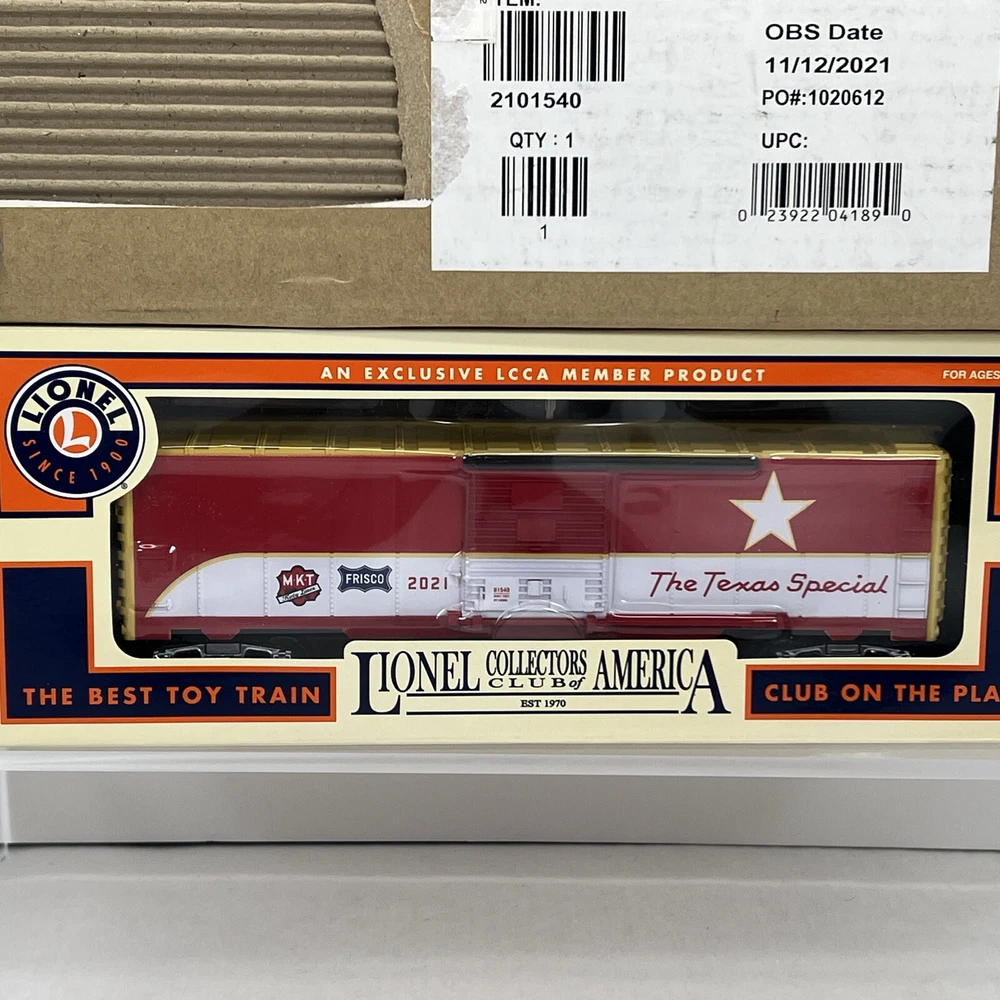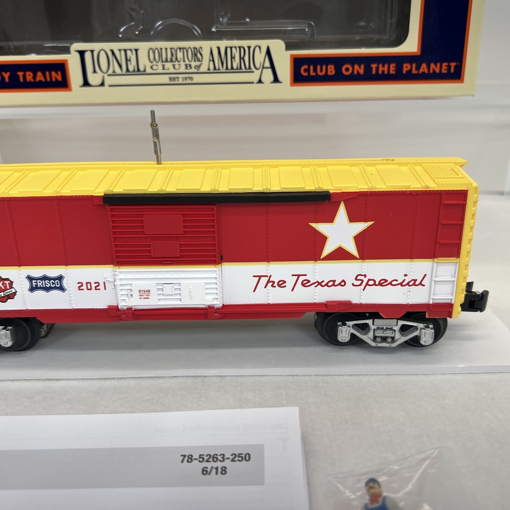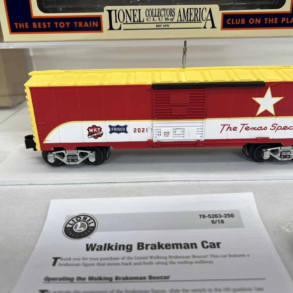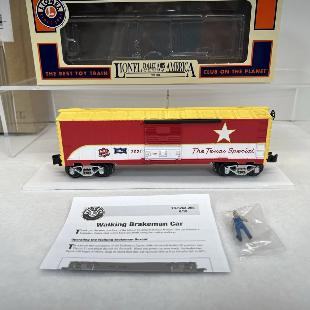 LIONEL (LCCA) LIONEL COLLECTORS CLUB OF AMERICA LCCA 2021 TEXAS SPECIAL WALKING BRAKEMAN BOX CAR THREE RAIL O GAUGE 2101540 NEW!! CLUB CAR. ORIGINAL BOX. SHIPPING BOX INCLUDED WILL BE PACKED TO ENSURE SAFE DELIVERY! Winning US bidder receives FREE SHIPPING USPS Priority UPS!! Canada Priority shipping is available . All other countries please email for a mailing quote. Thanks for looking! I ship everyday!!!!