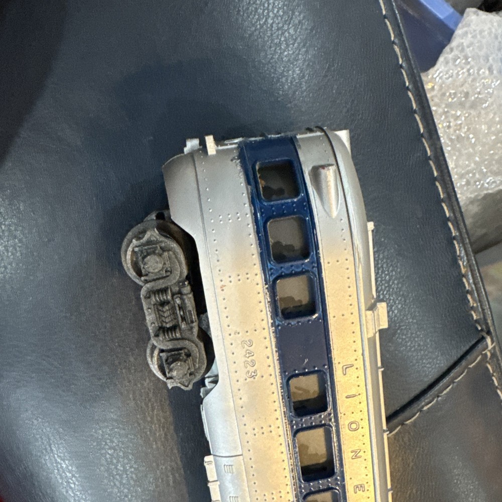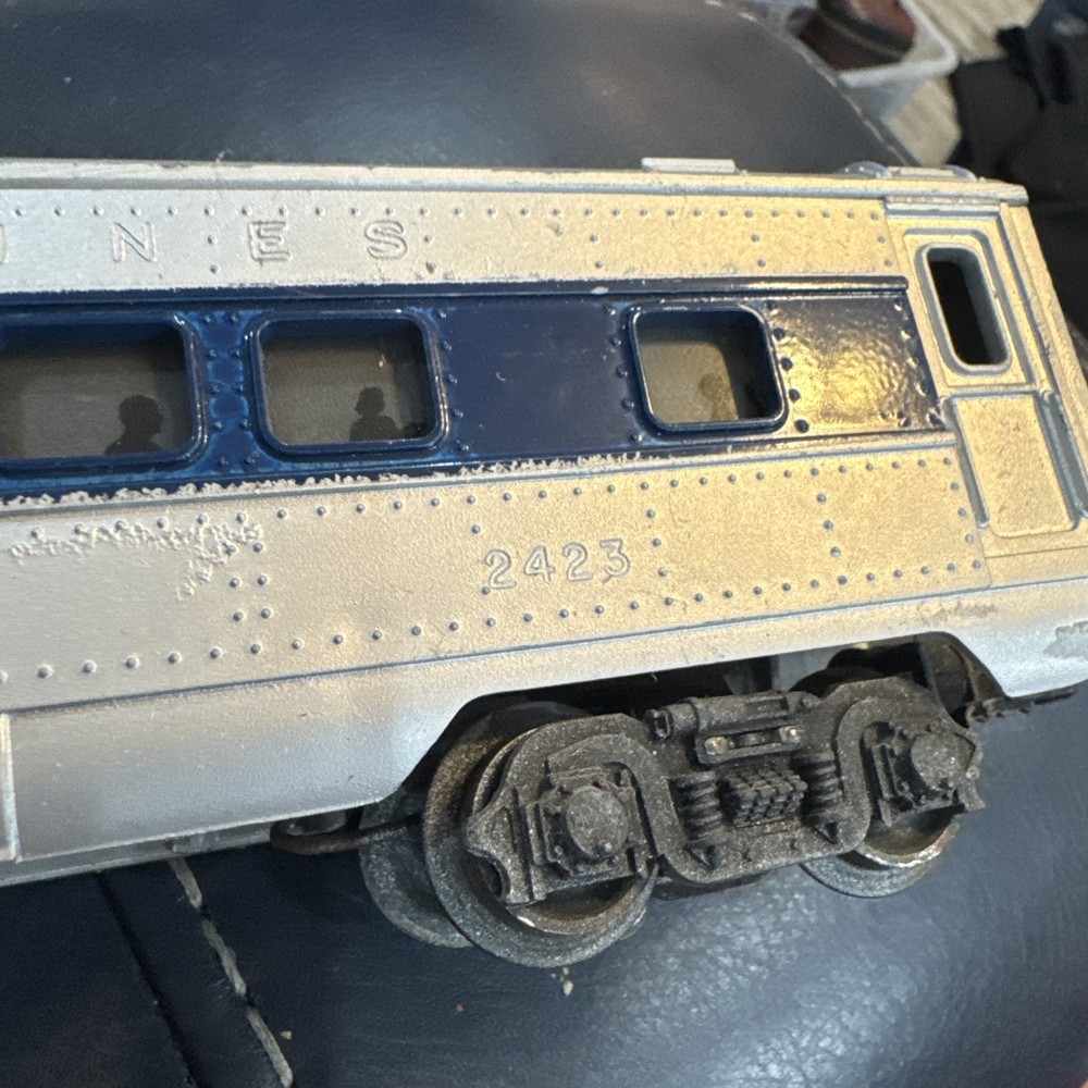 Control System: Analog Replica of: Pullman Type: Passenger Car Theme: Transportation Time Period Manufactured: 1950-1959 Year Manufactured: 1950 Gauge: O MPN: 2423 Vintage: Yes Item Weight: 1 lb Features: Light Function, Painted, Limited Edition Material: Brass, Pressed Steel, Steel, Plastic, Diecast Color: Silver Item Height: 2 in Rail System: Three-Rail System Power Type: AC Age Level: 17 Years & Up Brand: Lionel Scale: 1:48