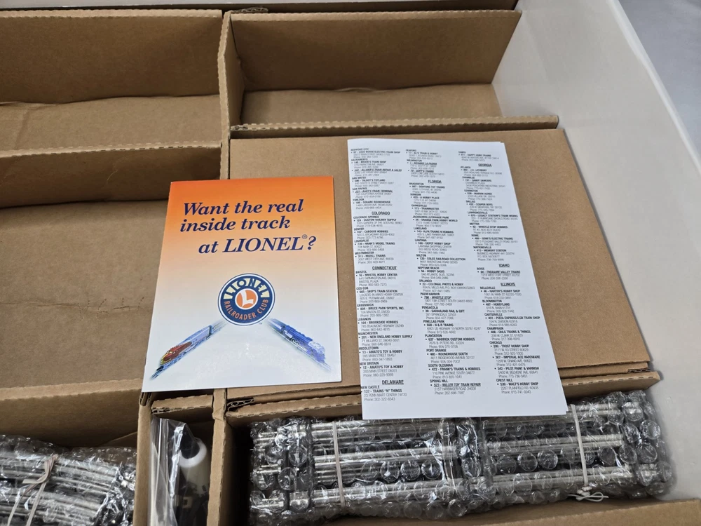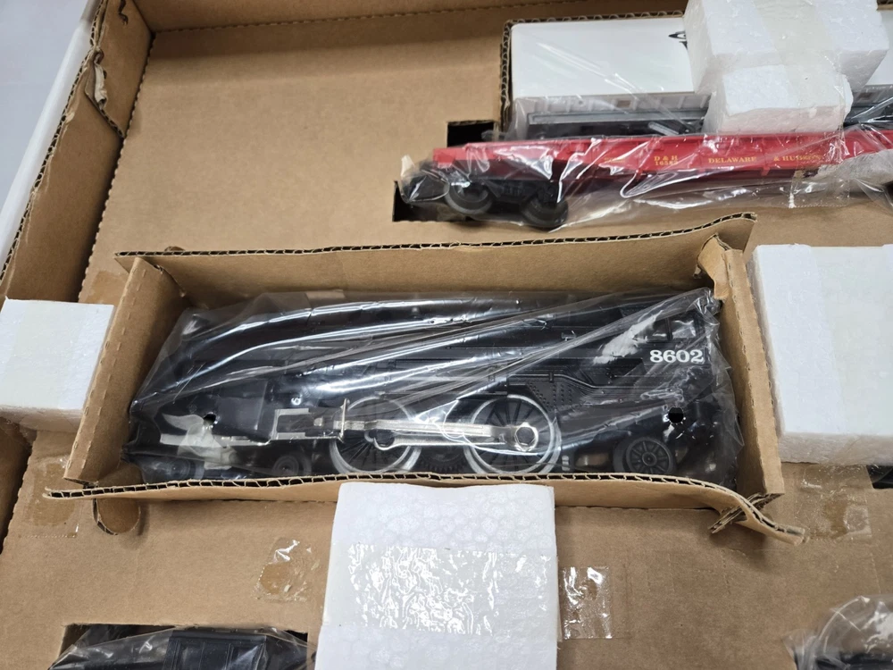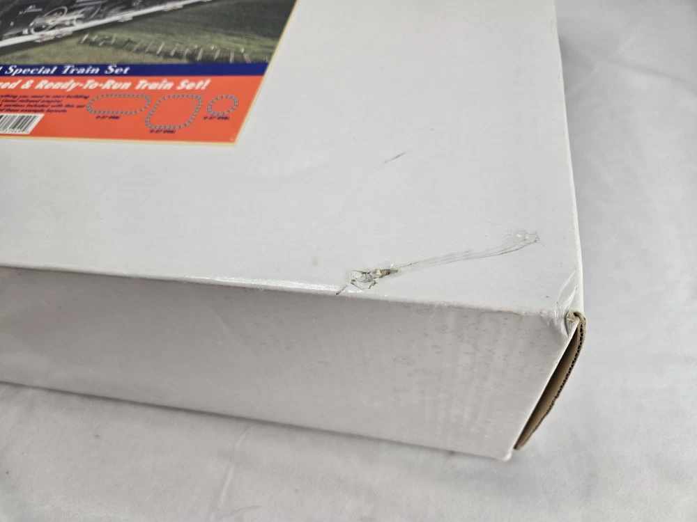This train set is new never used. There is some slight damage to the box.However, the contents inside the box are all new and in fantastic shape. Please view all photos for the best idea of exactly what you'll receive as well as the condition of both the packaging and the contents.