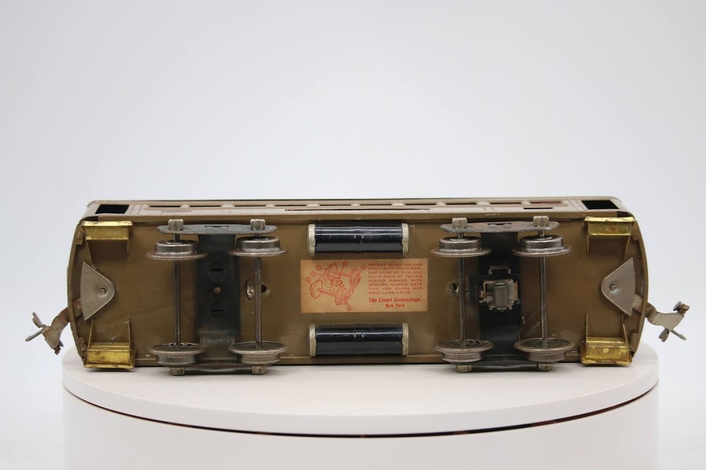 Standard Lionel Gauge 337 Mojave New York Central Lines Passenger Car SKU#003770 Look closely at the pictures to see further details. We ships USPS PLEASE see photos for detailed condition!! . PLEASE LOOK AT THE PHOTOS CAREFULLY BEFORE PURCHASING!! If you are purchasing more than one item from us and would like combined shipping, PLEASE request an adjusted invoice from us while still in the cart and BEFORE paying. Ebay does not usually calculate combined shipping accurately and you might get overcharged. Please be aware that when we photograph items, we use lighting that will show the details well. Although we try to present the product as accurately as possible, the lighting may affect the overall look of the item by appearing lighter/darker or possibly a different hue than the actual item. Depending on the type of lighting you have in your home, there may be some differences between the photos and the actual item. If this is a concern of yours, please feel free to request additional photos made in natural lighting or ask for a more detailed description of the item PRIOR TO PURCHASE! PLEASE NOTE: We greatly appreciate your interest in our item for sale. We look forward to a pleasant, quick and satisfying transaction for everybody, so please note the following information before bidding. Thank you! ITEM DESCRIPTIONS: * We will try to describe items well and provide plenty of photos. Please review these carefully before bidding or purchasing. * Only the items pictured and described are what you will receive when purchased. * We will occasionally offer an item clearly marked "AS-IS". This means that we are not sure if it works because we are unable to test it for whatever reason. We will offer these at a discounted price then a similar "working" item. It is possible that these items will work fine, but it also is possible that these items are more useful for their parts. Please only bid on or purchase these items if you are well aware of this, as we will only provide refunds of actual item price (no shipping cost refunds) for these items. * If you have any questions that aren't addressed by the descriptions or photos, please feel free to ask before you bid. * There may be pieces that are missing or broken including, but not limited to, couplers, brake wheels, steps, ladders, railings, etc. May need detailed cleaning SHIPPING: * We usually do not offer shipping to international addresses, but ARE WILLING TO TAKE CONSIDERATIONS. * We try to pack items as carefully as possible, but damage may occur during shipping. If you receive an item that was damaged in shipping, please contact us and we will work with you to resolve the problem. * We will combine shipping costs for all items the same buyer purchases from us within 2 days. Please wait to pay for items until you're done shopping with us. Please contact us if you're expecting to buy more items from us, or to have us adjust the shipping costs. * We will usually ship items out within 24 hours of payment being received Sunday through Friday at noon. We will notify the buyer if there will be a delay in shipping for some reason. Please allow additional time for holidays and weekends when the post office is closed. If payment is received after noon (EST) on Friday, the item might not be shipped until the following Monday. * We do try to recycle shipping materials as much as possible. RETURNS: We abide by eBay's Money Back Guarantee. We definitely want our customers to be happy with their purchase! You may return an item within 30 days of receiving it with the following guidelines: * If the item is defective or damaged (unless we clearly marked the listing "AS-IS"), the buyer will receive a full refund after the buyer returns it and it is received by us. Customers who falsely claim their item is defective, damaged, or not as described in order to receive a full refund and free return shipping will be permanently blocked from making future purchases from us. * If the item is as described (including "AS-IS" items) and the buyer decides for any other reason than defective/damaged to return it, only the actual price of the item will be refunded once it has been returned and it is received by us. The buyer will be asked to pay all original and return shipping charges. This includes all reasons other than defective/damaged, including wrong size, wrong type, changed mind, etc. All "AS-IS" items will fall into this category of return. Please make sure the item is what you want before purchasing it. * Please contact us before initiating a refund request. FEEDBACK: We always leave feedback at the end of transaction. We consider the transaction to be over when we receive feedback from the buyer confirming the item arrived satisfactorily. If you are unsatisfied with your purchase please contact us before leaving neutral or negative feedback. WE APPRECIATE POSITIVE FEEDBACK IF YOU ARE SATISFIED WITH YOUR PURCHASE! THANK YOU FOR YOUR INTEREST IN THIS ITEM!