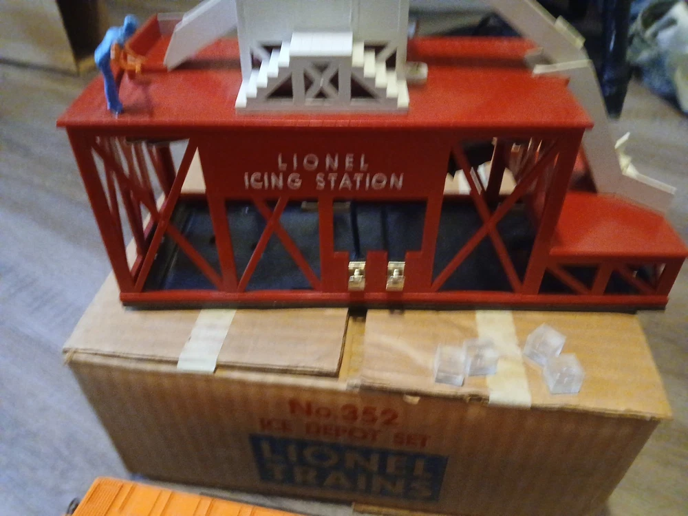 Lionel Postwar 352 ice station with box has 4 ice cubs and insert. Great condition everything works. See photos for best description thanks and see my other auctions.