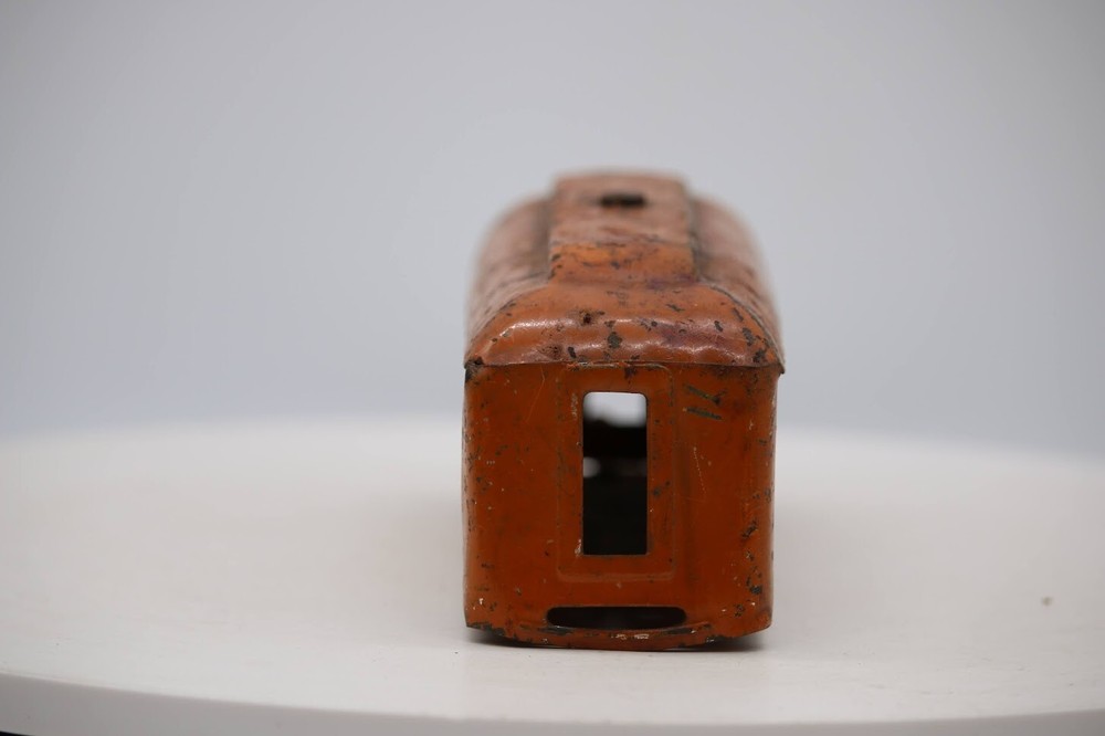 O Gauge Lionel 608 Pullman Car Orange Prewar X9333 SKU # 001931 Look closely at the pictures to see further details. We ships USPS PLEASE see photos for detailed condition!! There may be pieces that are missing or broken including, but not limited to, couplers, brake wheels, steps, ladders, railings, etc. May need detailed cleaning. PLEASE LOOK AT THE PHOTOS CAREFULLY BEFORE PURCHASING!! If you are purchasing more than one item from us and would like combined shipping, PLEASE request an adjusted invoice from us while still in the cart and BEFORE paying. Ebay does not usually calculate combined shipping accurately and you might get overcharged. Please be aware that when we photograph items, we use lighting that will show the details well. Although we try to present the product as accurately as possible, the lighting may affect the overall look of the item by appearing lighter/darker or possibly a different hue than the actual item. Depending on the type of lighting you have in your home, there may be some differences between the photos and the actual item. If this is a concern of yours, please feel free to request additional photos made in natural lighting or ask for a more detailed description of the item PRIOR TO PURCHASE! PLEASE NOTE: We greatly appreciate your interest in our item for sale. We look forward to a pleasant, quick and satisfying transaction for everybody, so please note the following information before bidding. Thank you! ITEM DESCRIPTIONS: * We will try to describe items well and provide plenty of photos. Please review these carefully before bidding or purchasing. * Only the items pictured and described are what you will receive when purchased. * We will occasionally offer an item clearly marked "AS-IS". This means that we are not sure if it works because we are unable to test it for whatever reason. We will offer these at a discounted price then a similar "working" item. It is possible that these items will work fine, but it also is possible that these items are more useful for their parts. Please only bid on or purchase these items if you are well aware of this, as we will only provide refunds of actual item price (no shipping cost refunds) for these items. * If you have any questions that aren't addressed by the descriptions or photos, please feel free to ask before you bid. SHIPPING: * We offer international shipping, if you have any questions please reach out. * We try to pack items as carefully as possible, but damage may occur during shipping. If you receive an item that was damaged in shipping, please contact us and we will work with you to resolve the problem. * We will combine shipping costs for all items the same buyer purchases from us within 2 days. Please wait to pay for items until you're done shopping with us. Please contact us if you're expecting to buy more items from us, or to have us adjust the shipping costs. * We will usually ship items out within 24 hours of payment being received Sunday through Friday at noon. We will notify the buyer if there will be a delay in shipping for some reason. Please allow additional time for holidays and weekends when the post office is closed. If payment is received after noon (EST) on Friday, the item might not be shipped until the following Monday. * We do try to recycle shipping materials as much as possible. RETURNS: We abide by eBay's Money Back Guarantee. We definitely want our customers to be happy with their purchase! You may return an item within 30 days of receiving it with the following guidelines: * If the item is defective or damaged (unless we clearly marked the listing "AS-IS"), the buyer will receive a full refund after the buyer returns it and it is received by us. Customers who falsely claim their item is defective, damaged, or not as described in order to receive a full refund and free return shipping will be permanently blocked from making future purchases from us. * If the item is as described (including "AS-IS" items) and the buyer decides for any other reason than defective/damaged to return it, only the actual price of the item will be refunded once it has been returned and it is received by us. The buyer will be asked to pay all original and return shipping charges. This includes all reasons other than defective/damaged, including wrong size, wrong type, changed mind, etc. All "AS-IS" items will fall into this category of return. Please make sure the item is what you want before purchasing it. * Please contact us before initiating a refund request. FEEDBACK: We always leave feedback at the end of transaction. We consider the transaction to be over when we receive feedback from the buyer confirming the item arrived satisfactorily. If you are unsatisfied with your purchase please contact us before leaving neutral or negative feedback. WE APPRECIATE POSITIVE FEEDBACK IF YOU ARE SATISFIED WITH YOUR PURCHASE! THANK YOU FOR YOUR INTEREST IN THIS ITEM!