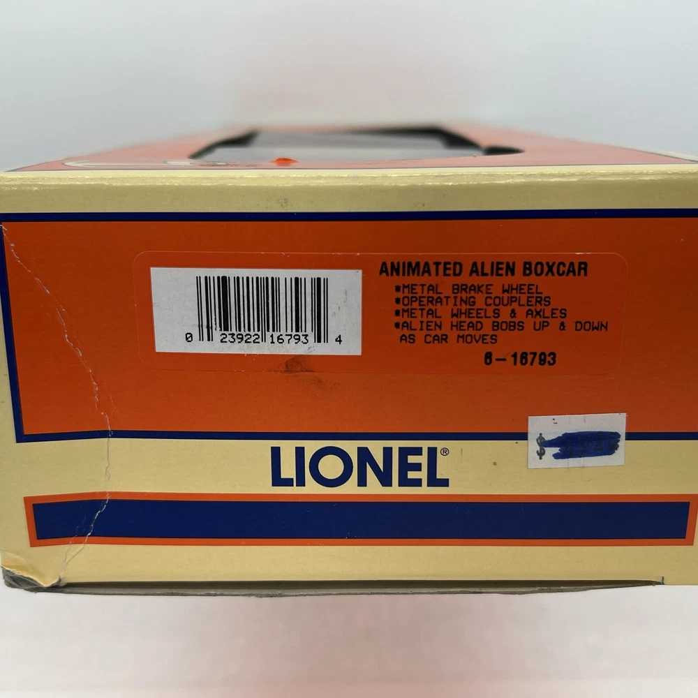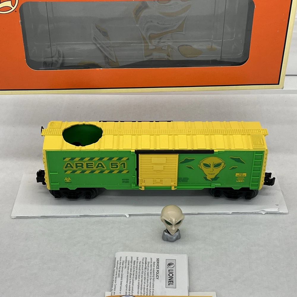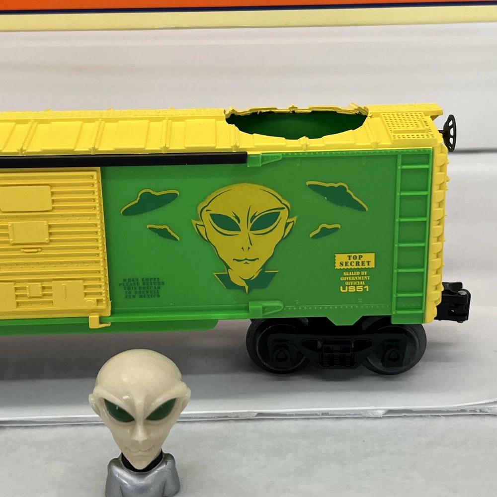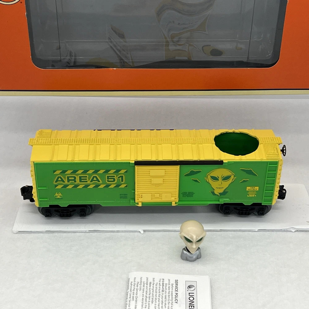 LIONEL AREA 51 ANIMATED ALIEN BOBBING HEAD BOX CAR O GAUGE 3 RAIL 6-16793 USED!! ORIGINAL BOX. WILL BE PACKED TO ENSURE SAFE DELIVERY! Winning US bidder receives FREE SHIPPING USPS Priority UPS !! Canada Priority shipping is available . All other countries please email for a mailing quote. Thanks for looking! I ship everyday!!!!