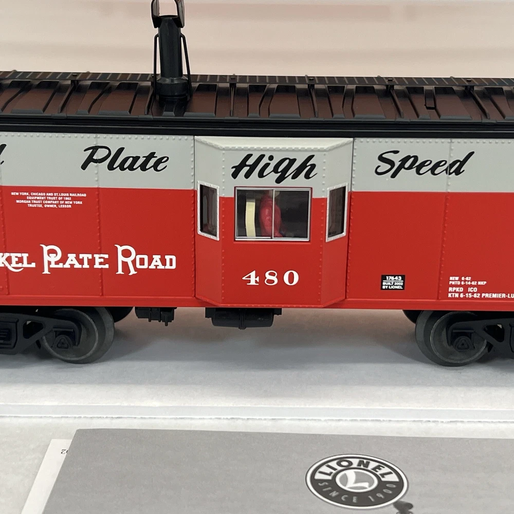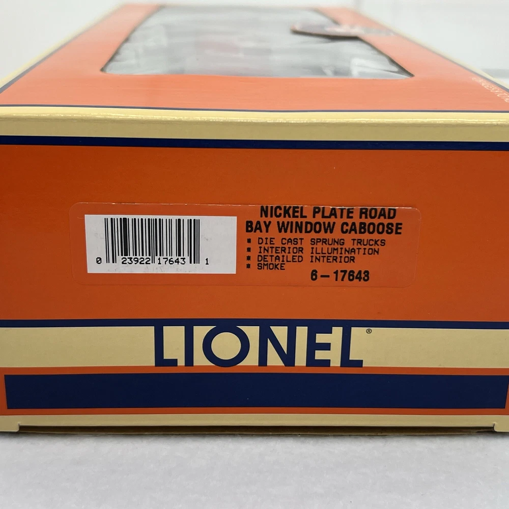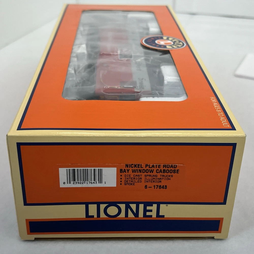 LIONEL #480 NICKEL PLATE ROAD SMOKING BAY WINDOW CABOOSE O GAUGE THREE RAIL 6-17643 NEW!! ORIGINAL BOX. STICKER ON SIDE OF BOX. Body Durable painted body Couplers Operating couplers Lighting Interior Lighting Miscellaneous Authentically detailed interior Separately applied metal details Opening Doors Smoke Unit Trucks Die-cast metal sprung trucks PRODUCT SPECIFICATIONS Rail Line: Nickel Plate Road Gauge: Standard O Scale Brand: Lionel Min Curve: O-31 Dimensions: Length: 10 1/8" WILL BE PACKED TO ENSURE SAFE DELIVERY ! Winning US bidder receives FREE SHIPPING USPS Priority UPS !! Canada Priority shipping is available . All other countries please email for a mailing quote. Thanks for looking! I ship everyday!!!!