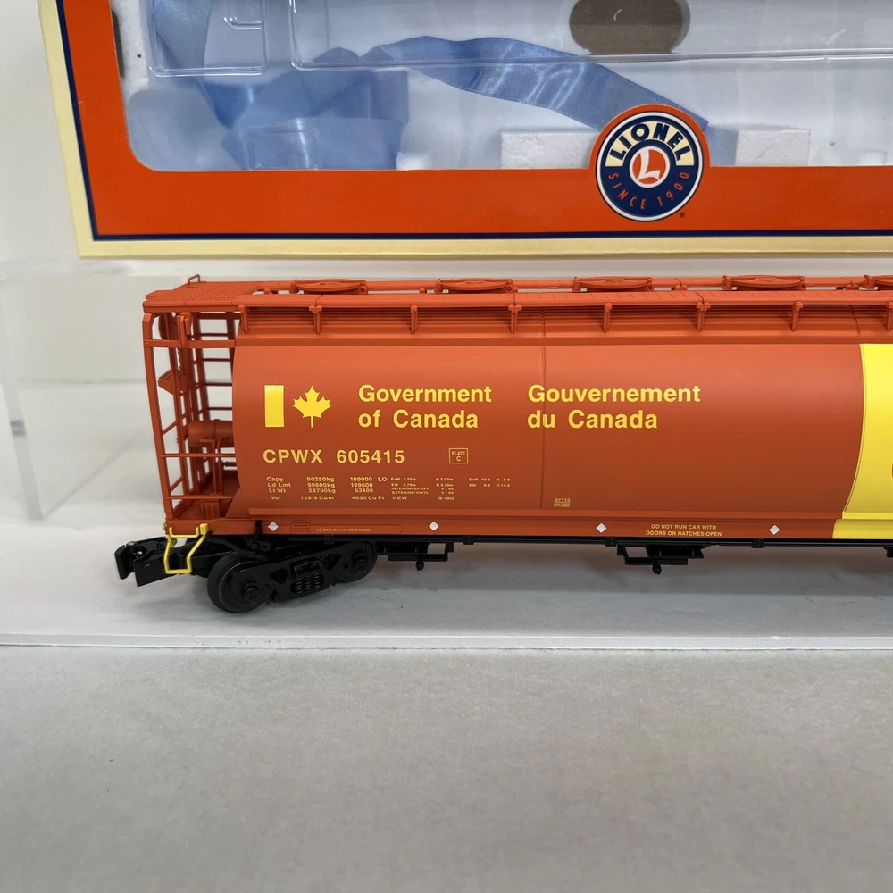 LIONEL #605415 GOVERNMENT OF CANADA CYLINDRICAL HOPPER O GAUGE THREE RAIL 6-27113 USED!! ORIGINAL BOX. WILL BE PACKED TO ENSURE SAFE DELIVERY ! Winning US bidder receives FREE SHIPPING USPS Priority UPS !! Canada Priority shipping is available . All other countries please email for a mailing quote. Thanks for looking! I ship everyday!!!!