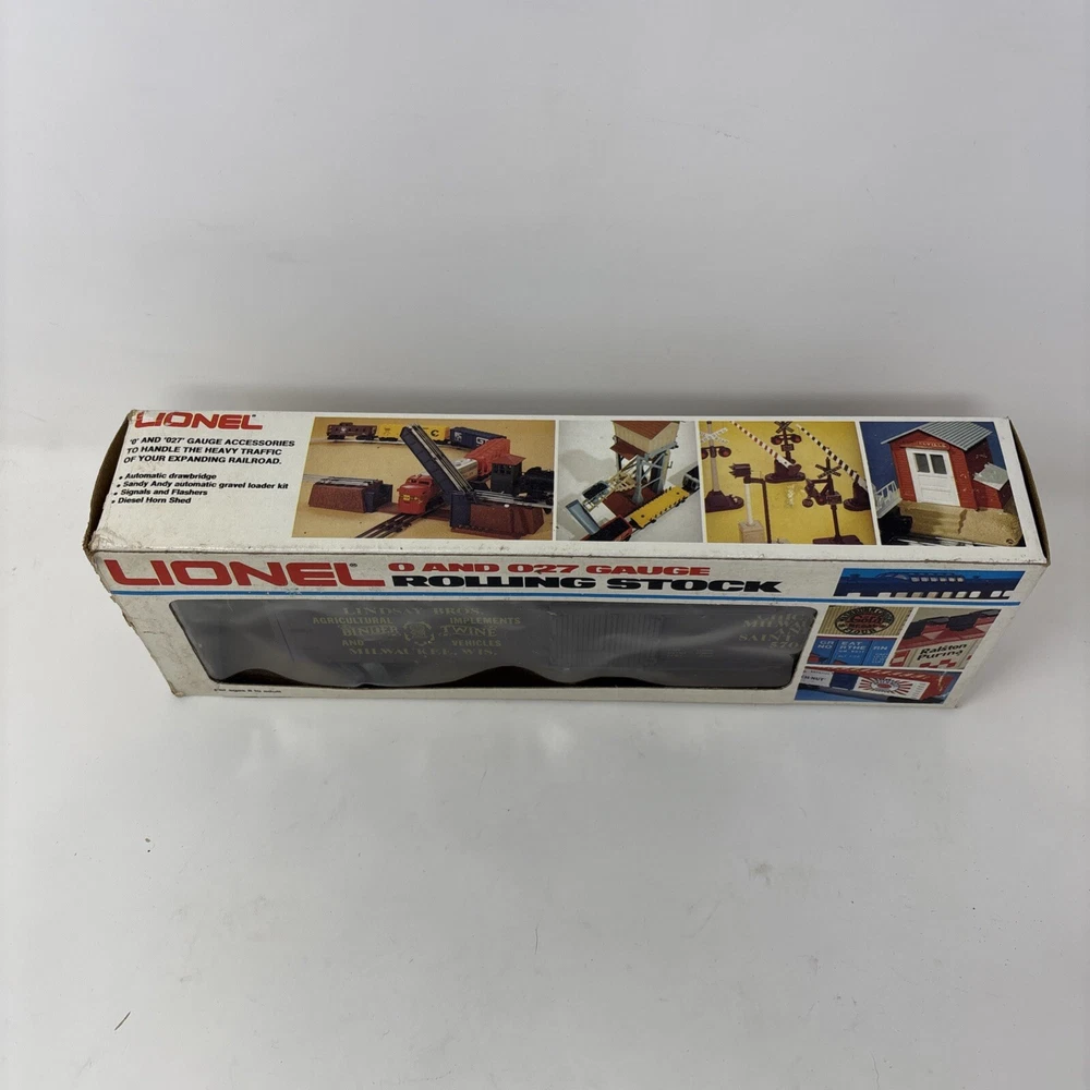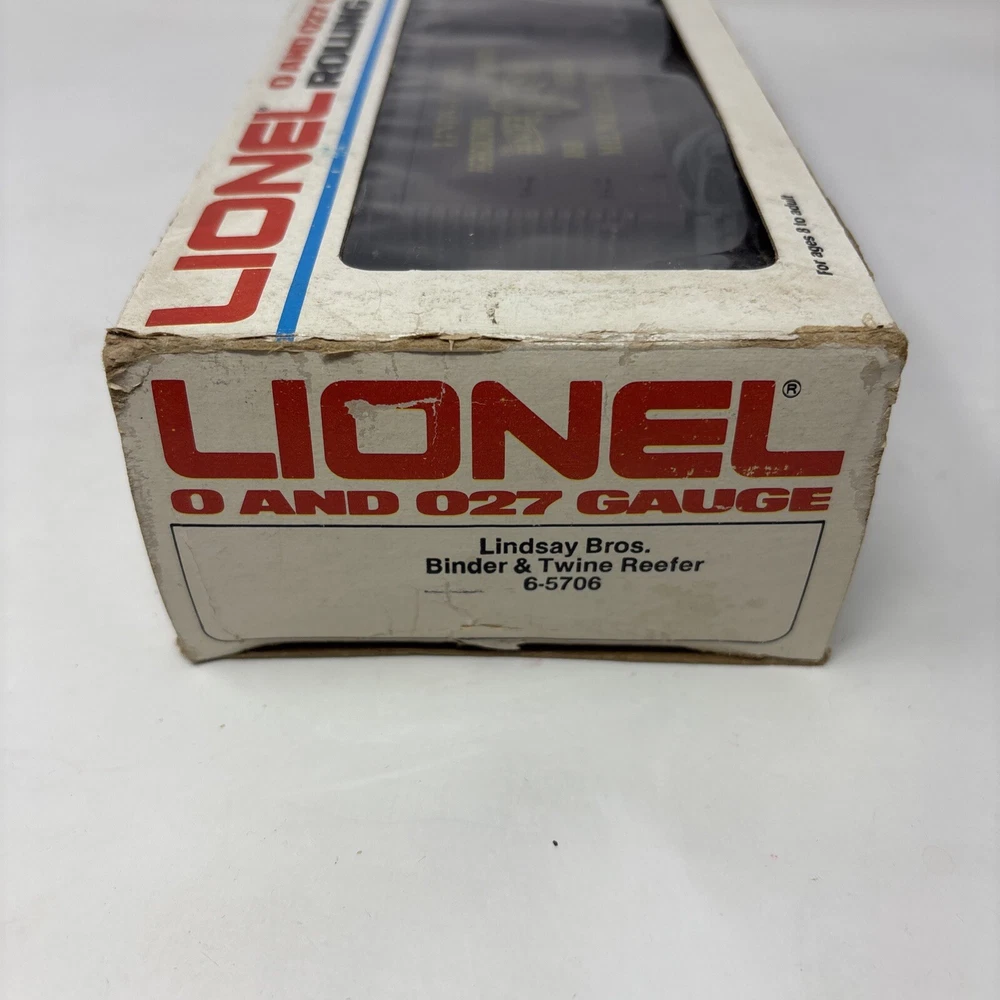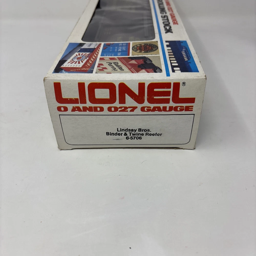 The product is a Lionel box car in O and O27 gauge, specifically the Lindsay Bros. Binder & Twine Reefer Train Car. Please refer to photos for condition!