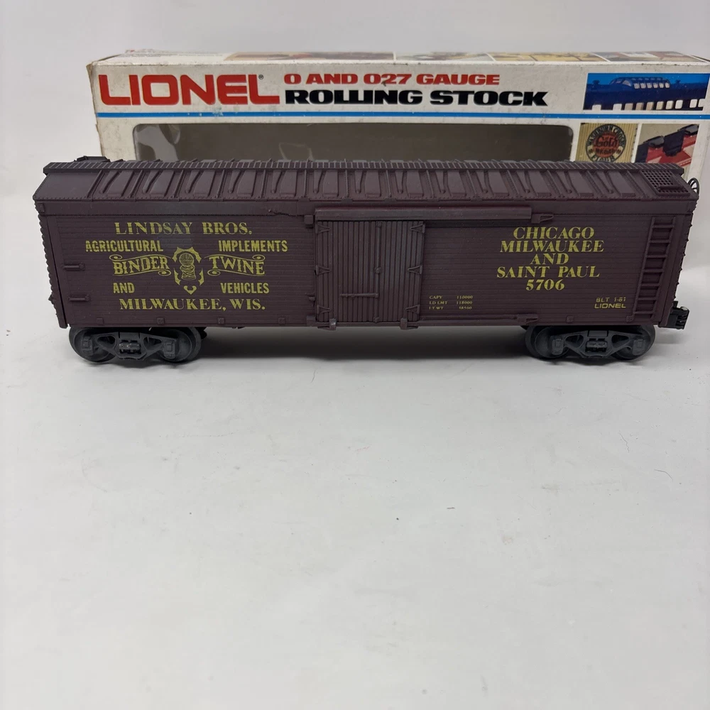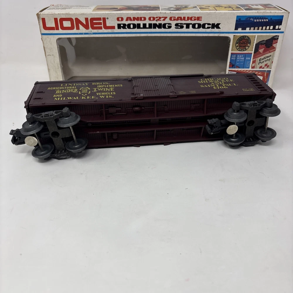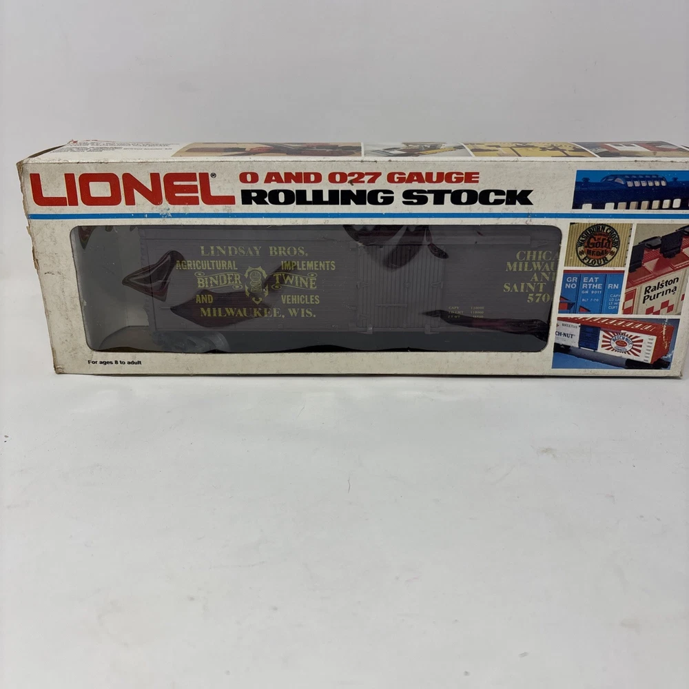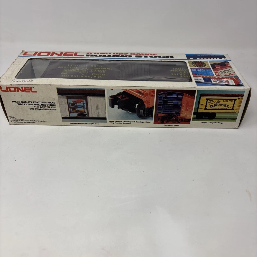 The product is a Lionel box car in O and O27 gauge, specifically the Lindsay Bros. Binder & Twine Reefer Train Car. Please refer to photos for condition!