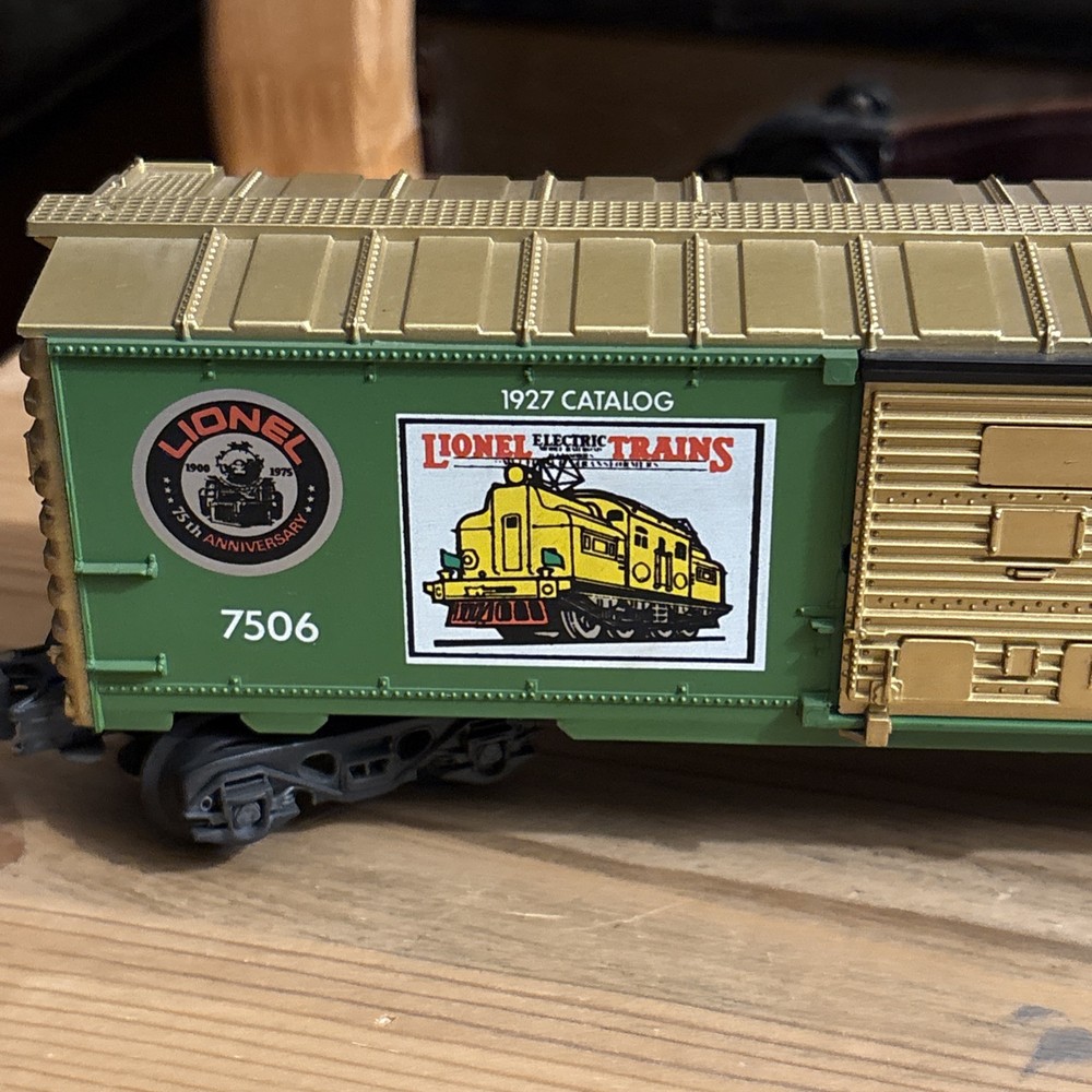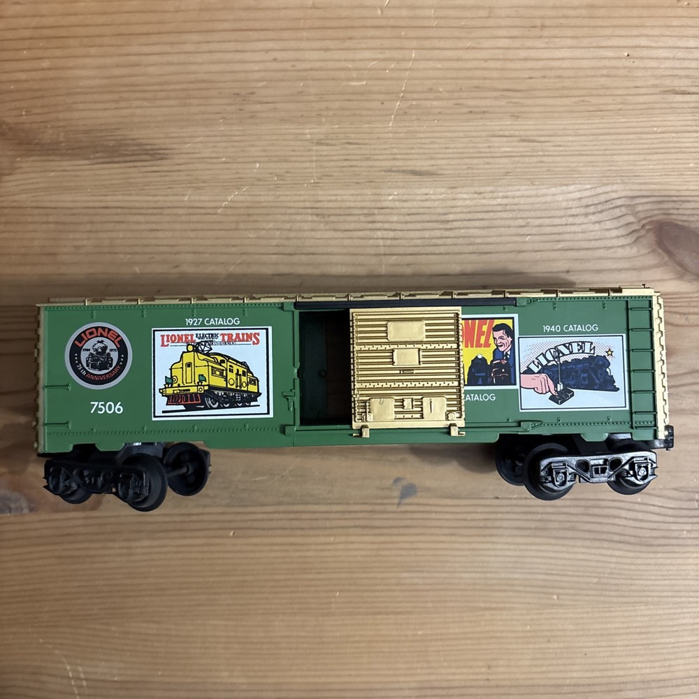 Used 75th anniversary Lionel 1927 catalog box car 7506. In good shape, sold as is.