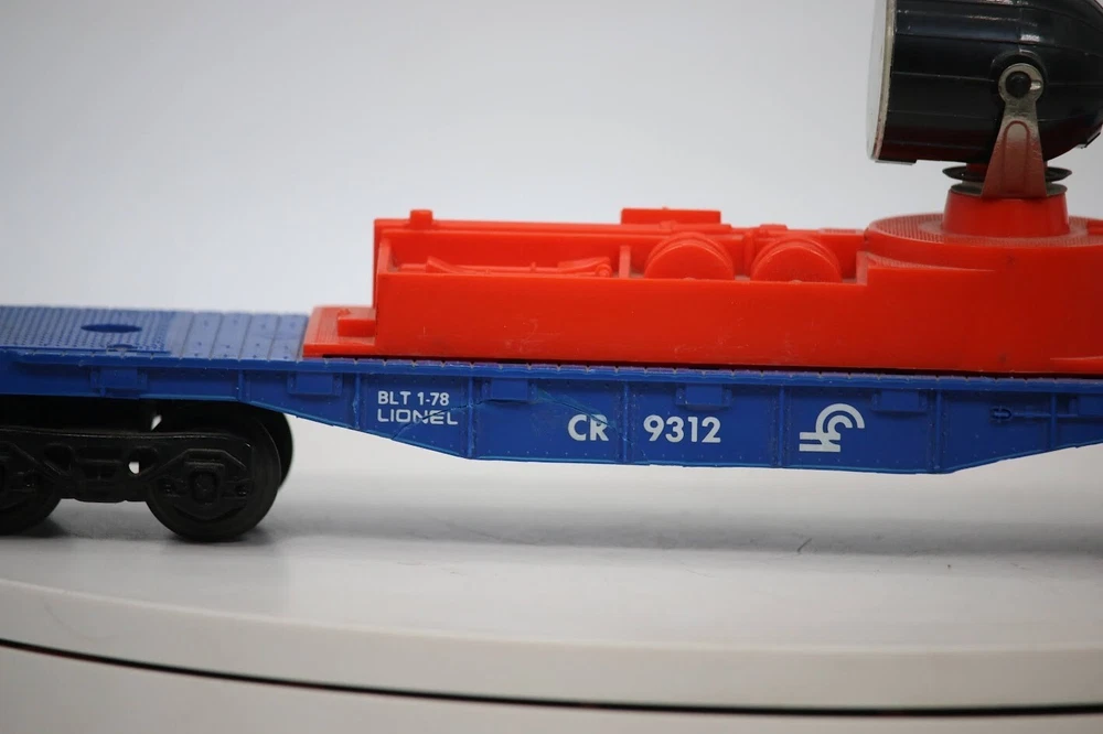 Lionel 9312 CONRAIL Blue & Orange Operating Searchlight Car O/027 ga. 1978-83 SKU#009566 PLEASE READ BEFORE PURCHASING Condition: Please review all photos carefully for details on the item's condition. Photos are part of the description, and any notable flaws will be highlighted. Combined Shipping: If purchasing multiple items, request a revised invoice before paying to ensure accurate combined shipping costs. eBay's system may not calculate this correctly, leading to overcharges. Lighting Disclaimer: Photos are taken under bright lighting to highlight details, which may cause slight variations in color or hue depending on your lighting. If you need additional photos (e.g., in natural light) or more details, please ask before purchasing. As-Is Items: Items come AS-IS. The way they appear in our pictures is how the Item will arrive to you. What's Included: Only the items shown in the photos and described in the listing are included in the purchase. We strive to describe items thoroughly and provide clear photos. If you have any questions or concerns not addressed in the listing, feel free to ask before purchasing. Thank you for shopping with us!
