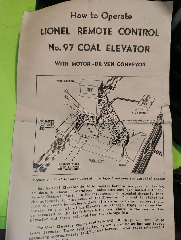 Lionel 97 Postwar Coal Elevator with Switch and Instructions - Fully Functional