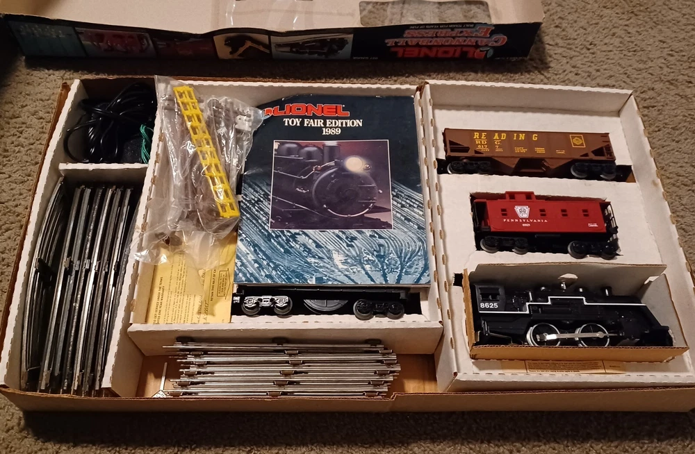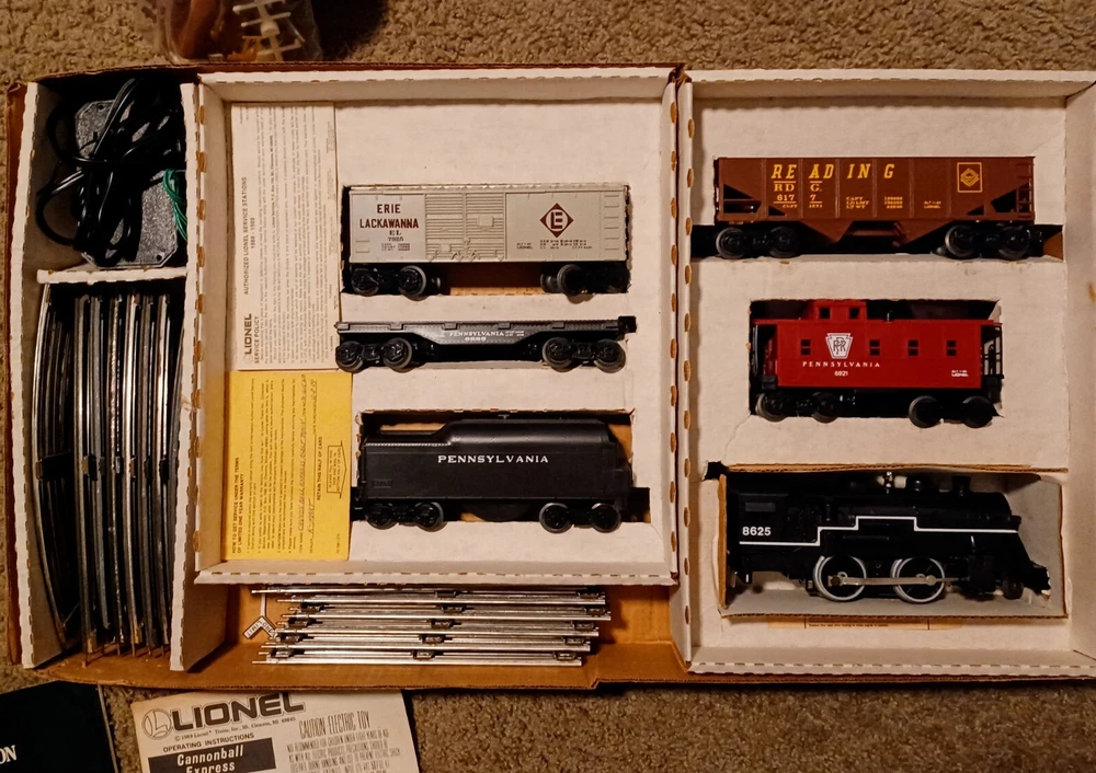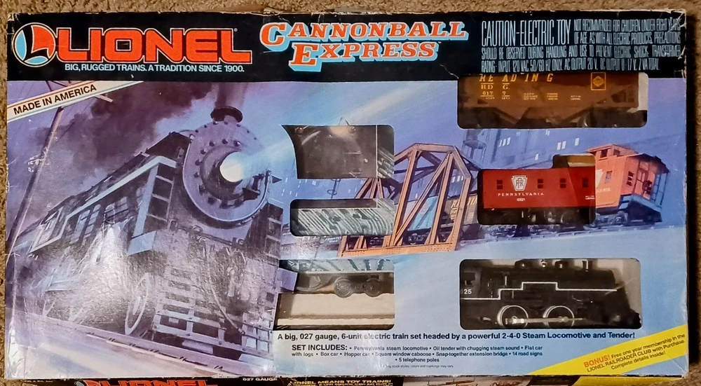 Vintage 1980s Lionel Cannonball Express Train set. Appears complete, and tested in good running condition (see video). Box has wear. Track is showing age and needs to be cleaned. Includes a 1989 catalog for viewing new models (Including this one). Sold as is and shipped to USA only please. Thanks for looking!