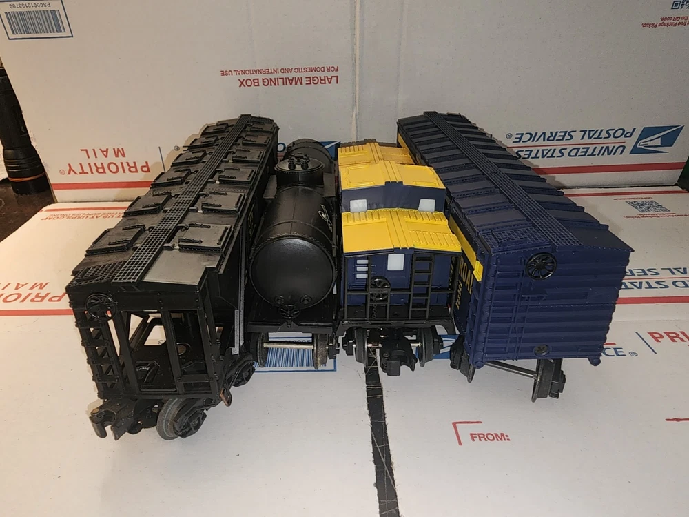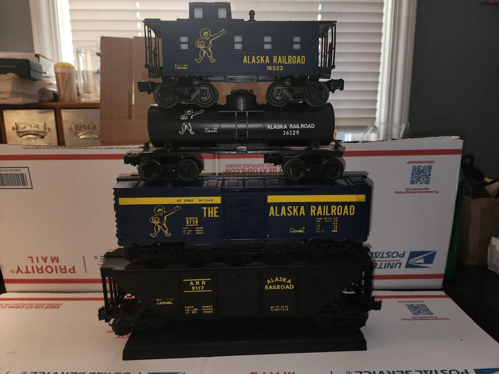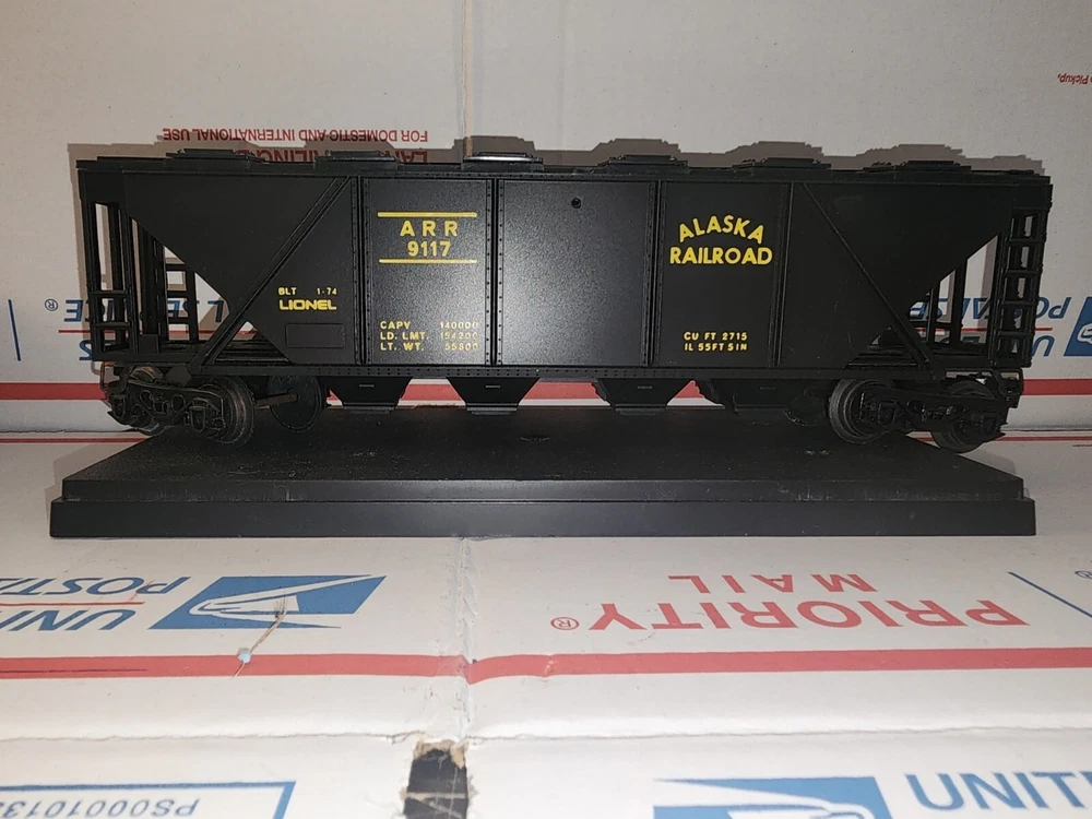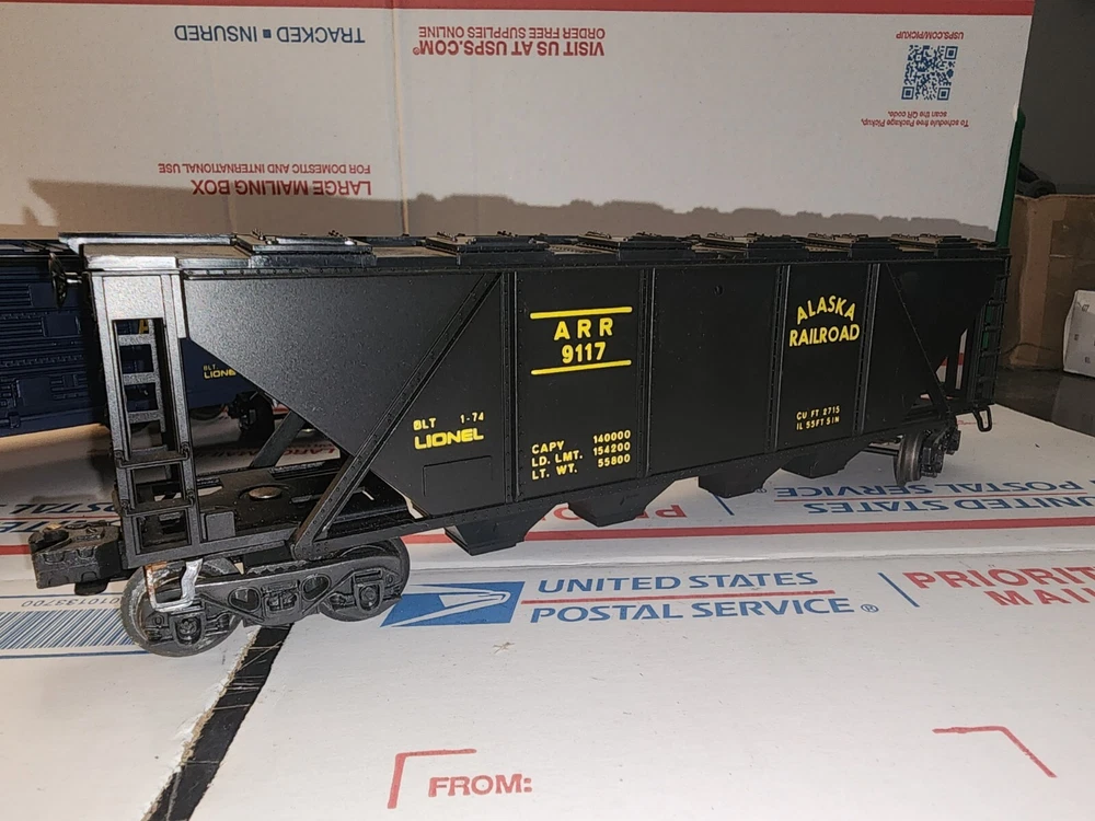 Lot of 4 alaska railroad freight cars, listed as used due to no boxes. most look to have little or no run time. 0 or 0/27 gauge. ARR 9117 COVERED QUAD HOPPER BLT 1-74 / 9758 BOX CAR BLT 1-75 / 16523 CABOOSE LIGHTED BLT 1-91 / 16129 TANK CAR. shipping is based on your zip code and weight 3 pounds from 07033 via usps. You pay what I pay, no markups. I've been collecting lionel trains for last 20 years and I'm never going to have time or room to complete a layout. All trains listed have been purchased from flea markets, estate sales, or internet. Basically I just would test engines on small track and make any minor repairs, then it would go into storage. Some trains may have been modified, repainted, or have non original parts by previous owners. Items are described to the best of my ability, before listing I run engine through basic operation and note any problems. Unless otherwise stated, trains are sold as is. So please look at pictures carefully and ask any questions you may have before bidding. Combined shipping available on same day purchases, please request or wait for invoice. I try to charge best shipping rates for buyer, but sometimes it's better to pay more for safer packaging on fragile products. I will be listing more trains for weeks to come.
