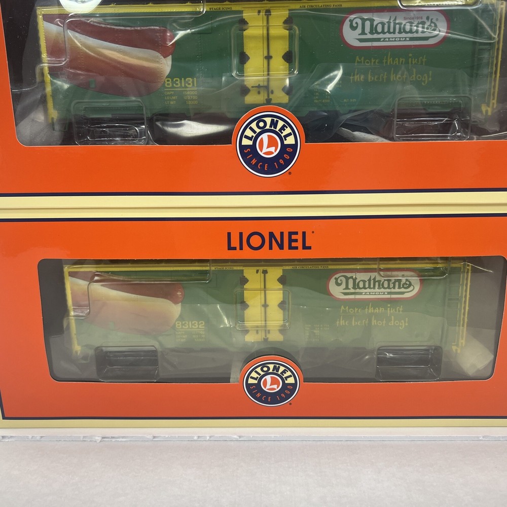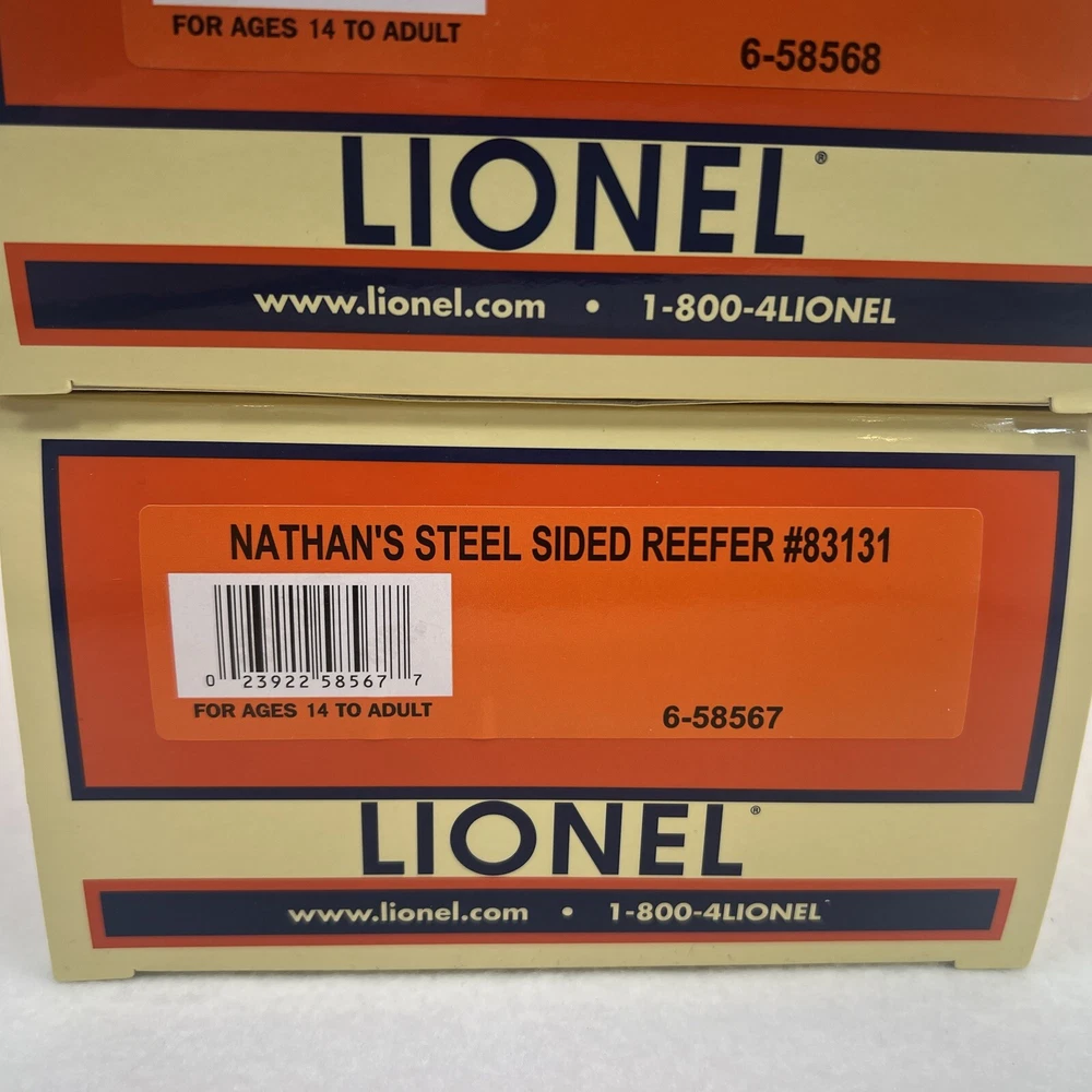 NASSAU LIONEL OPERATING ENGINEERS LOT OF 2 NATHAN'S HOT DOGS STEEL-SIDED REEFERS #83131 #83132 O GAUGE THREE RAIL 6-58567 6-58568 NEW! CLUB CARS. ORIGINAL BOXES. WILL BE PACKED TO ENSURE SAFE DELIVERY! Winning US bidder receives FREE SHIPPING USPS Priority UPS !! Canada Priority shipping is available . All other countries please email for a mailing quote. Thanks for looking! I ship everyday!!!!