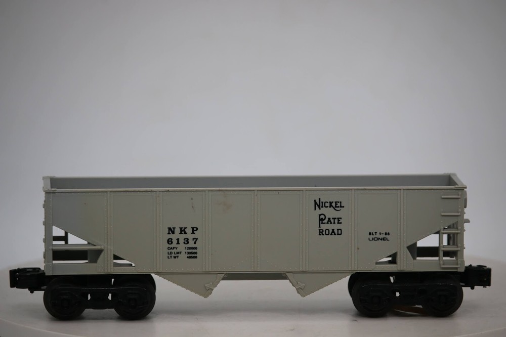 Lionel 1986 O Gauge 1:48 Scale Flat Gray Nickel Plate Road NKP 6137 SKU#009293 PLEASE READ BEFORE PURCHASING Condition: Please carefully review all photos for details on the item's condition. Photos are part of the description, and any notable flaws will be highlighted. Combined Shipping: If purchasing multiple items, please request a revised invoice before paying to ensure accurate combined shipping costs. eBay's system may not calculate this correctly, which could lead to overcharges. Lighting Disclaimer: Photos are taken under bright lighting to highlight details, which may cause slight variations in color or hue depending on your lighting. If you need additional photos (e.g., in natural light) or more details, please ask before purchasing. As-Is Items: Items marked "AS-IS" are untested and sold at a discount. These items may work but could also be better suited for parts. Refunds will cover only the item price, not shipping. What’s Included: Only the items shown in the photos and described in the listing are included in the purchase. We strive to describe items thoroughly and provide clear photos. If you have any questions or concerns not addressed in the listing, feel free to ask before purchasing. Thank you for shopping with us!