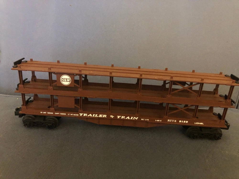 1973 Lionel 6-9129 TCA 3-Tier Auto Carrier Car - Trailer Train N&W. Made of plastic and diecast materials, this 1:48 scale replica is a great addition to any collection. Auto carrier car is in excellent condition, however box has some wear due to age. This was my car when I was a child. Please look at all pictures. Email if you have any questions and thanks for looking!!