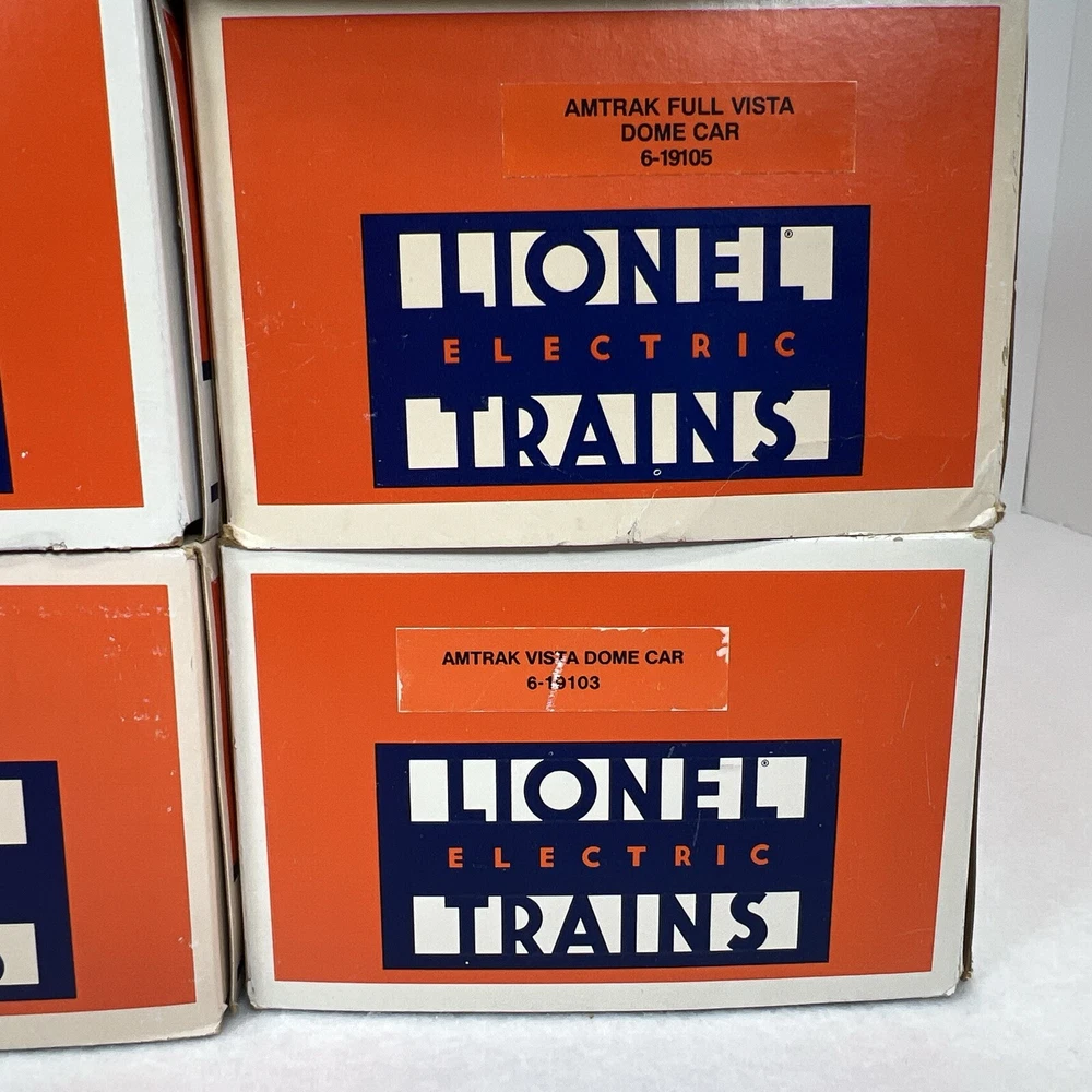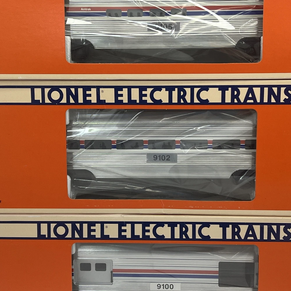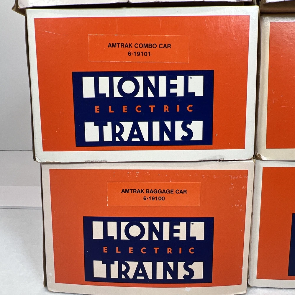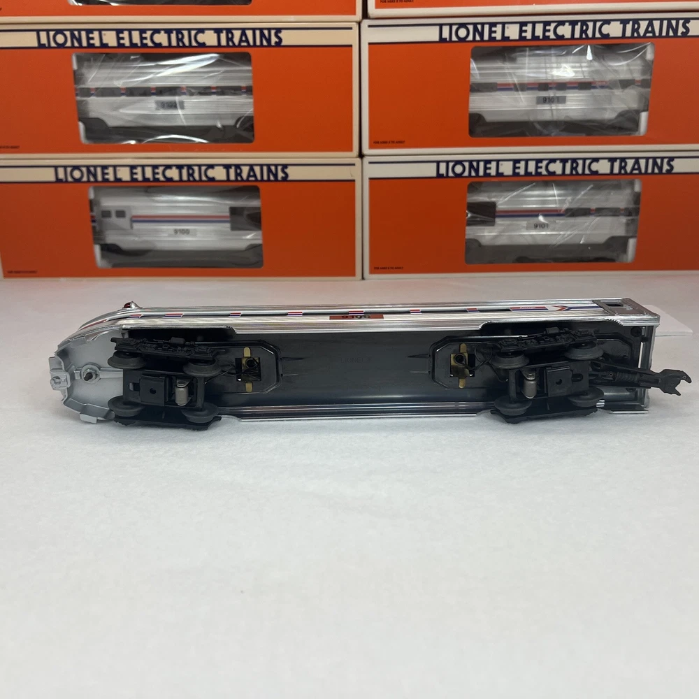LIONEL AMTRAK ALUMINUM 15" 6 CAR PASSENGER SET O GAUGE THREE RAIL INCLUDES 6-19100 BAGGAGE CAR 6-19101 COMBO CAR 6-19102 PASSENGER CAR 6-19103 VISTA DOME CAR 6-19105 FULL VISTA DOME CAR 6-19106 OBSERVATION CAR NEW!!. ORIGINAL BOXES. BEAUTIFUL 15" ALUMINUM SET.. NO TRACK TIME. CARS WERE DISPLAYED. FEATURES Aluminum bodies Die-cast trucks with magnetic couplers. Passenger Silhouettes Length: 15" each WILL BE PACKED TO ENSURE SAFE DELIVERY! Winning US bidder receives FREE SHIPPING USPS Priority UPS!! Canada Priority shipping is available . All other countries please email for a mailing quote. Thanks for looking! I ship everyday!!!!