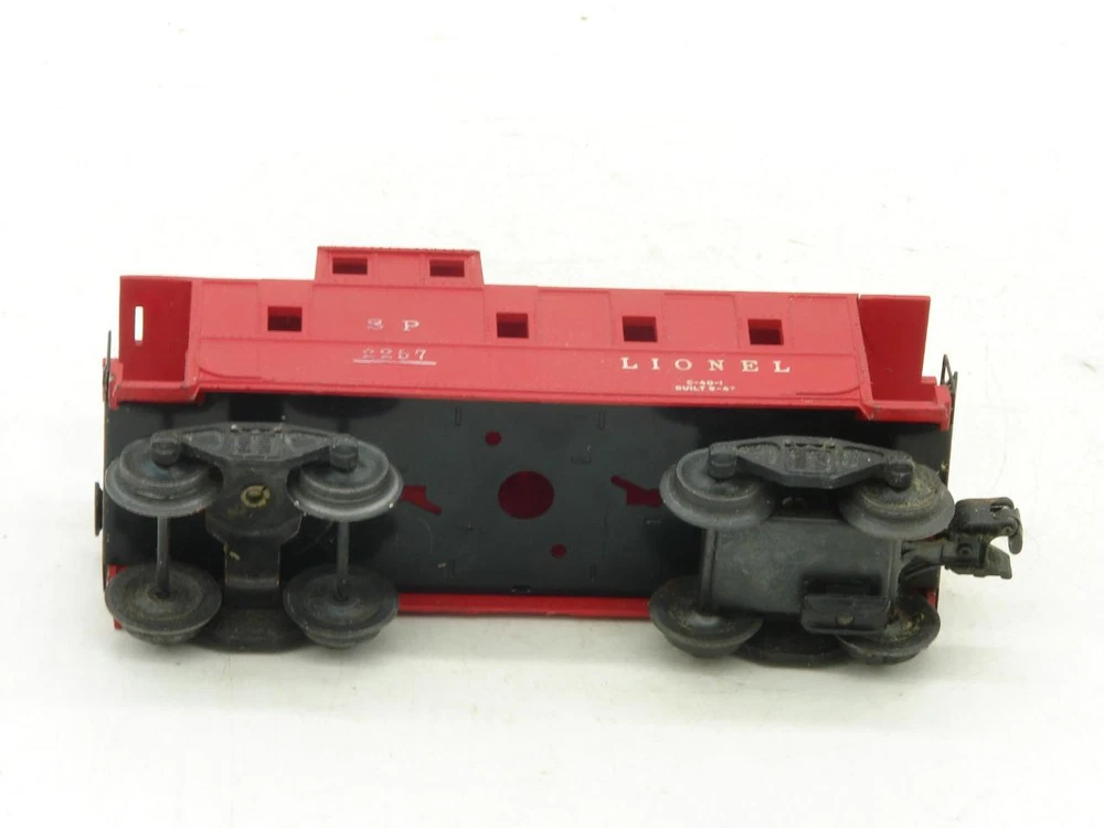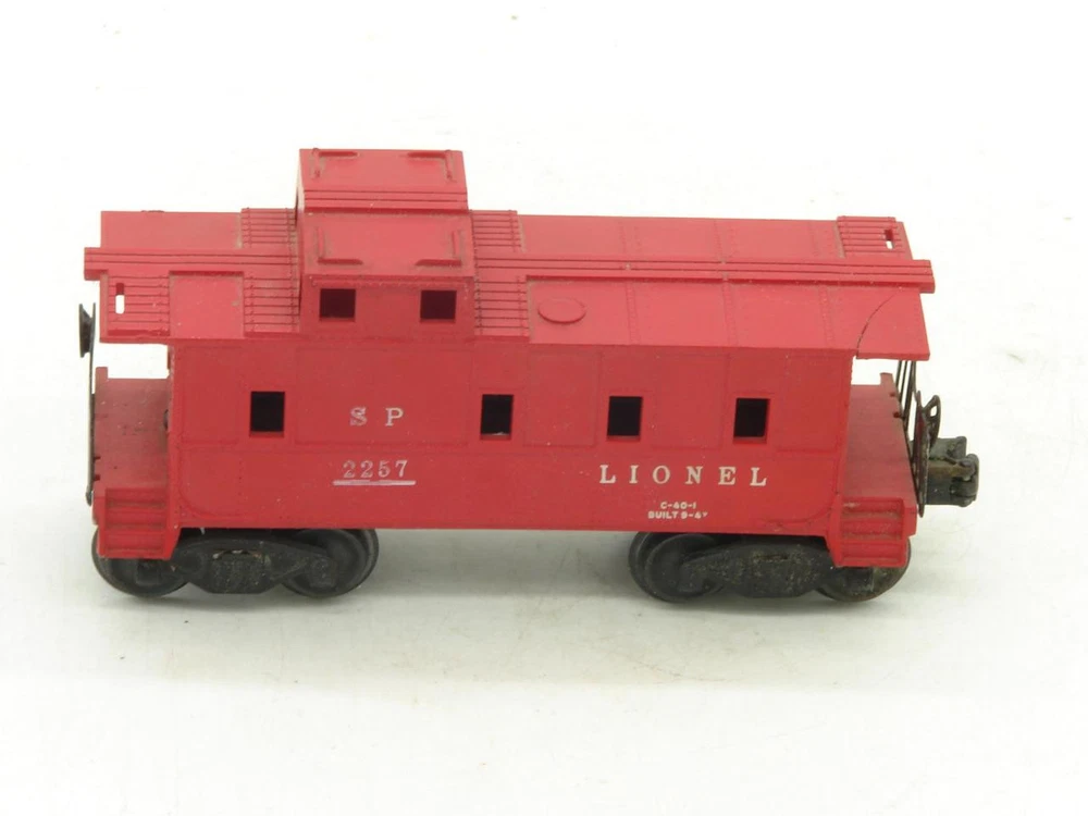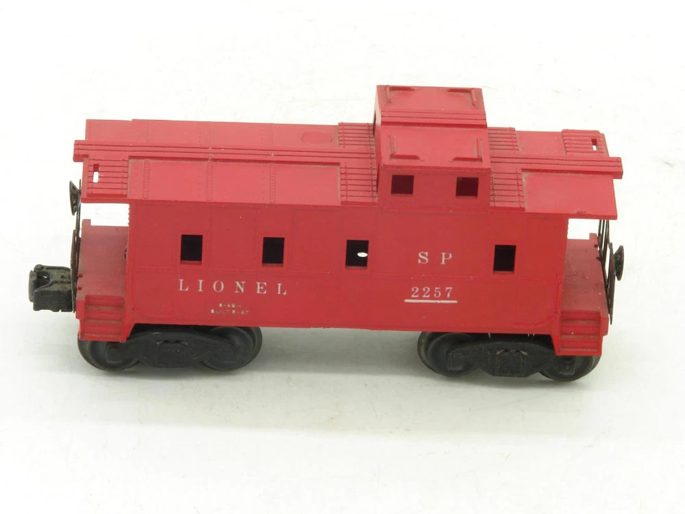 Thanks for looking. Offered, is a Lionel Red 2257 Caboose. Lionel caboose in "good" overall condition. Car is complete but does have a break / crack on the right front roof overhang. Balance of the car is in good condition. Underside of the frame is in good condition with no rust. Car rides on staple end trucks. Electric coupler has been tested and does work. Car weighs under 1 pound packed for shipping. Lionel O Gauge Postwar 2257 Caboose Lionel O Gauge Postwar 2257 Caboose Click images to enlarge Description Thanks for looking. Offered, is a Lionel Red 2257 Caboose. Lionel caboose in "good" overall condition. Car is complete but does have a break / crack on the right front roof overhang. Balance of the car is in good condition. Underside of the frame is in good condition with no rust. Car rides on staple end trucks. Electric coupler has been tested and does work. Car weighs under 1 pound packed for shipping. I happily combine shipping. Please use the shopping cart to add the items you are interested in and request a total. A revised invoice with updated shipping will be sent. You can also complete checkout right away, and I will refund any overage paid. Please keep in mind that shipping charges continue to rise. I do not look to make a profit from shipping, the rates are quoted by the carrier and are passed along. Because of the increase in shipping, it is in many cases cheaper to ship 2 or more items together in the same box when you cost average things. Please look to see if there is anything else of interest that can help to lower the overall cost, especially if that other item was something you were interested in anyways. I do try to offer as many shipping options as possible to suit your needs, both as far as cost goes, and speed at which you receive an item. International shipping available. Payment Payments can be made by way of PayPal. Please feel free to email me with any payment questions you may have. Payments are due within 7 days of the auction(s) ending. I will extend the payment period if you are bidding on multiple items. Please let me know when you have completed bidding for items you are interested in, and are ready to receive the corrected totoal for your multi-item purchase. Please do not pay for multi-item purchases until you have received a corrected invoice total. Keep in mind this could take up to an extra day to receive your total. Shipping I happily combine shipping on all purchases. Shipping is made by way of USPS mail. You will have the choice of First Class, Parcel Post/Select, Priority Mail, or Express Mail. These choices will be based upon availabilty for the package size / weight, and destination. I try to offer every available shipping method for your purchase. International Shipping. I happily ship all train / hobby/ collectable items world wide. Please contact me for details to make sure your country does not have shipping restrictions. Please keep in mind that shipping times are estimates, and parcels may be held up by customs. International shipping is by way of USPS Mail. Your choice of First Class Package, Priority International, or Express Mail International. NOTE: First class package may not be available for large orders. International Customs Fees. Additioanl import or duties fees may be charged by your country. These potential fees are not included in the shipping paid on your purchase. Please contact your customs / duties office to check on any additional fees that could due. FEEL FREE TO CONTACT ME WITH ANY SHIPPING QUESTIONS YOU MAY HAVE. Terms of Sale Due to the nature of the items being offered for sale, purchases are considered final. Every effort is made to give as honest a review of an item being offered as possible. Since many of these items are vintage, proper operation of these items is difficult to guarantee. Most items are either bench tested, or tested on a layout prior to listing. Please feel free to contact me prior to bidding or purchasing an item if you have any additional questions you would like answered. Contact Us Please feel free to contact me with any questions you may have about an item being offered for sale. I will do my best to get back back in touch with you the same or very next day. Images sell! Get Supersized Images & Free Image Hosting Create your brand with Auctiva's Customizable Templates. Attention Sellers - Get Templates Image Hosting, Scheduling at Auctiva.com. Track Page Views With Auctiva's Counter