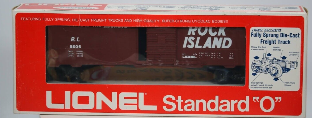Lionel Standard "O" gauge 6-9806 ROCK ISLAND BOXCAR Route Of Rockets NEW IN BOX Look closely at the pictures to see further details. We ships USPS PLEASE see photos for detailed condition!! PLEASE LOOK AT THE PHOTOS CAREFULLY BEFORE PURCHASING!! If you are purchasing more than one item from us and would like combined shipping, PLEASE request an adjusted invoice from us while still in the cart and BEFORE paying. eBay does not usually calculate combined shipping accurately and you might get overcharged. Please be aware that when we photograph items, we use lighting that will show the details well. Although we try to present the product as accurately as possible, the lighting may affect the overall look of the item by appearing lighter/darker or possibly a different hue than the actual item. Depending on the type of lighting you have in your home, there may be some differences between the photos and the actual item. If this is a concern of yours, please feel free to request additional photos made in natural lighting or ask for a more detailed description of the item PRIOR TO PURCHASE! PLEASE NOTE: We greatly appreciate your interest in our item for sale. We look forward to a pleasant, quick and satisfying transaction for everybody, so please note the following information before bidding. Thank you! ITEM DESCRIPTIONS: * We will try to describe items well and provide plenty of photos. Please review these carefully before bidding or purchasing. * Only the items pictured and described are what you will receive when purchased. * We will occasionally offer an item clearly marked "AS-IS". This means that we are not sure if it works because we are unable to test it for whatever reason. We will offer these at a discounted price then a similar "working" item. It is possible that these items will work fine, but it also is possible that these items are more useful for their parts. Please only bid on or purchase these items if you are well aware of this, as we will only provide refunds of actual item price (no shipping cost refunds) for these items. * If you have any questions that aren't addressed by the descriptions or photos, please feel free to ask before you bid. SHIPPING: * We usually do not offer shipping to international addresses, but ARE WILLING TO TAKE CONSIDERATIONS. * We try to pack items as carefully as possible, but damage may occur during shipping. If you receive an item that was damaged in shipping, please contact us and we will work with you to resolve the problem. * We will combine shipping costs for all items the same buyer purchases from us within 2 days. Please wait to pay for items until you're done shopping with us. Please contact us if you're expecting to buy more items from us, or to have us adjust the shipping costs. * We will usually ship items out within 24 hours of payment being received Sunday through Friday at noon. We will notify the buyer if there will be a delay in shipping for some reason. Please allow additional time for holidays and weekends when the post office is closed. If payment is received after noon (EST) on Friday, the item might not be shipped until the following Monday. * We do try to recycle shipping materials as much as possible. RETURNS: We abide by eBay's Money Back Guarantee. We definitely want our customers to be happy with their purchase! You may return an item within 30 days of receiving it with the following guidelines: * If the item is defective or damaged (unless we clearly marked the listing "AS-IS"), the buyer will receive a full refund after the buyer returns it and it is received by us. Customers who falsely claim their item is defective, damaged, or not as described in order to receive a full refund and free return shipping will be permanently blocked from making future purchases from us. * If the item is as described (including "AS-IS" items) and the buyer decides for any other reason than defective/damaged to return it, only the actual price of the item will be refunded once it has been returned and it is received by us. The buyer will be asked to pay all original and return shipping charges. This includes all reasons other than defective/damaged, including wrong size, wrong type, changed mind, etc. All "AS-IS" items will fall into this category of return. Please make sure the item is what you want before purchasing it. * Please contact us before initiating a refund request. FEEDBACK: We always leave feedback at the end of transaction. We consider the transaction to be over when we receive feedback from the buyer confirming the item arrived satisfactorily. If you are unsatisfied with your purchase please contact us before leaving neutral or negative feedback. WE APPRECIATE POSITIVE FEEDBACK IF YOU ARE SATISFIED WITH YOUR PURCHASE! THANK YOU FOR YOUR INTEREST IN THIS ITEM!