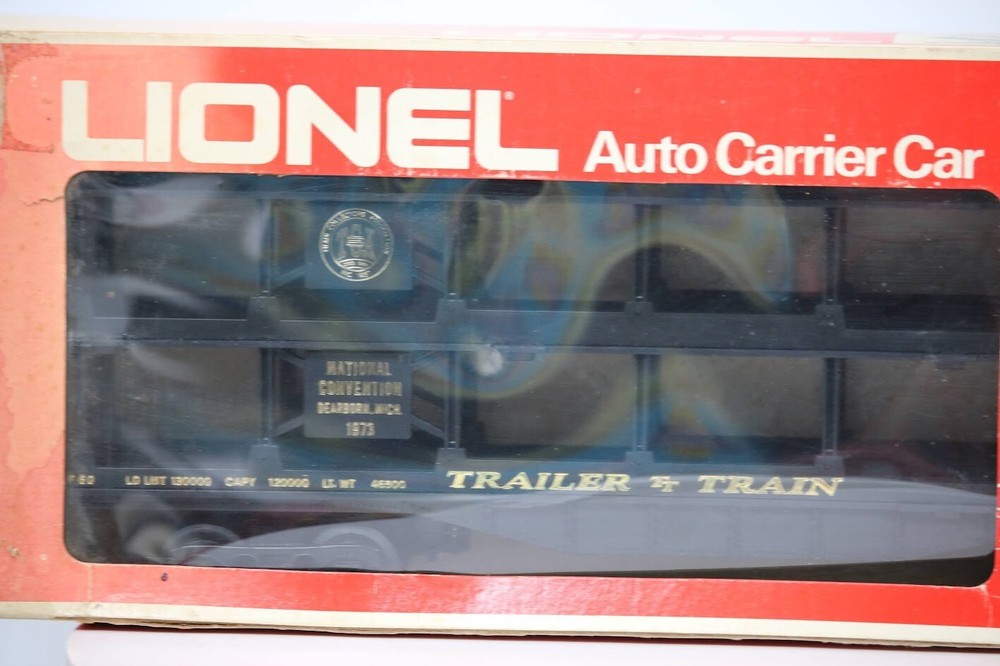 Lionel O Gauge #6-9123 TCA 1973 National Convention Auto Carrier Car New in Box! Box has color fading from sitting in display in sunlight. Look closely at the pictures to see further details. PLEASE see photos for detailed condition!! PLEASE LOOK AT THE PHOTOS CAREFULLY BEFORE PURCHASING!! If you are purchasing more than one item from us and would like combined shipping, PLEASE request an adjusted invoice from us while still in the cart and BEFORE paying. eBay does not usually calculate combined shipping accurately and you might get overcharged. Please be aware that when we photograph items, we use lighting that will show the details well. Although we try to present the product as accurately as possible, the lighting may affect the overall look of the item by appearing lighter/darker or possibly a different hue than the actual item. Depending on the type of lighting you have in your home, there may be some differences between the photos and the actual item. If this is a concern of yours, please feel free to request additional photos made in natural lighting or ask for a more detailed description of the item PRIOR TO PURCHASE! There may be pieces that are missing or broken including, but not limited to, couplers, brake wheels, steps, ladders, railings, etc. May need detailed cleaning. PLEASE NOTE: We greatly appreciate your interest in our item for sale. We look forward to a pleasant, quick and satisfying transaction for everybody, so please note the following information before bidding. Thank you! ITEM DESCRIPTIONS: * We will try to describe items well and provide plenty of photos. Please review these carefully before bidding or purchasing. * Only the items pictured and described are what you will receive when purchased. * We will occasionally offer an item clearly marked "AS-IS". This means that we are not sure if it works because we are unable to test it for whatever reason. We will offer these at a discounted price then a similar "working" item. It is possible that these items will work fine, but it also is possible that these items are more useful for their parts. Please only bid on or purchase these items if you are well aware of this, as we will only provide refunds of actual item price (no shipping cost refunds) for these items. * If you have any questions that aren't addressed by the descriptions or photos, please feel free to ask before you bid. SHIPPING: * We offer international shipping, please feel free to contact us if you have any questions. * We try to pack items as carefully as possible, but damage may occur during shipping. If you receive an item that was damaged in shipping, please contact us and we will work with you to resolve the problem. * We will combine shipping costs for all items the same buyer purchases from us within 2 days. Please wait to pay for items until you're done shopping with us. Please contact us if you're expecting to buy more items from us, or to have us adjust the shipping costs. * We will usually ship items out within 24 hours of payment being received Sunday through Friday at noon. We will notify the buyer if there will be a delay in shipping for some reason. Please allow additional time for holidays and weekends when the post office is closed. If payment is received after noon (EST) on Friday, the item might not be shipped until the following Monday Or Later If Monday Is Holiday. * We do try to recycle shipping materials as much as possible. RETURNS: We abide by eBay's Money Back Guarantee. We definitely want our customers to be happy with their purchase! You may return an item within 30 days of receiving it with the following guidelines: * If the item is defective or damaged (unless we clearly marked the listing "AS-IS"), the buyer will receive a full refund after the buyer returns it and it is received by us. Customers who falsely claim their item is defective, damaged, or not as described in order to receive a full refund and free return shipping will be permanently blocked from making future purchases from us. * If the item is as described (including "AS-IS" items) and the buyer decides for any other reason than defective/damaged to return it, only the actual price of the item will be refunded once it has been returned and it is received by us. The buyer will be asked to pay all original and return shipping charges. This includes all reasons other than defective/damaged, including wrong size, wrong type, changed mind, etc. All "AS-IS" items will fall into this category of return. Please make sure the item is what you want before purchasing it. * Please contact us before initiating a refund request, issues, questions or concerns. We will do our best to get back to you as quickly as we can. Thank you and if you read this far... you are awesome and we hope you have a great day!! FEEDBACK: We always leave feedback at the end of transaction. We consider the transaction to be over when we receive feedback from the buyer confirming the item arrived satisfactorily. If you are unsatisfied with your purchase please contact us before leaving neutral or negative feedback. WE APPRECIATE POSITIVE FEEDBACK IF YOU ARE SATISFIED WITH YOUR PURCHASE! THANK YOU FOR YOUR INTEREST IN THIS ITEM!