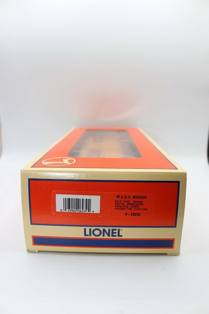 Lionel O Scale Trains 6-26239 M.A.D.D. Boxcar # 9700. Brand New in the Box. Manufacturer: Lionel Model Number: 6-26239 Years Manufactured: 1999 - 1999 Road Name: MADD Scale/Era: O Modern Model Type: Freight Cars PLEASE see photos for detailed condition!! There may be pieces that are missing or broken including, but not limited too, couplers, brake wheels, steps, ladders, railings, etc. May need detailed cleaning. PLEASE LOOK AT THE PHOTOS CAREFULLY BEFORE PURCHASING!! If you are purchasing more than one item from us and would like combined shipping, PLEASE request an adjusted invoice from us while still in the cart and BEFORE paying. eBay does not usually calculate combined shipping accurately and you might get overcharged. Please be aware that when we photograph items, we use lighting that will show the details well. Although we try to present the product as accurately as possible, the lighting may affect the overall look of the item by appearing lighter/darker or possibly a different hue than the actual item. Depending on the type of lighting you have in your home, there may be some differences between the photos and the actual item. If this is a concern of yours, please feel free to request additional photos made in natural lighting or ask for a more detailed description of the item PRIOR TO PURCHASE! PLEASE NOTE: We greatly appreciate your interest in our item for sale. We look forward to a pleasant, quick and satisfying transaction for everybody, so please note the following information before bidding. Thank you! ITEM DESCRIPTIONS: * We will try to describe items well and provide plenty of photos. Please review these carefully before bidding or purchasing. * Only the items pictured and described are what you will receive when purchased. * We will occasionally offer an item clearly marked "AS-IS". This means that we are not sure if it works because we are unable to test it for whatever reason. We will offer these at a discounted price than a similar "working" item. It is possible that these items will work fine, but it also is possible that these items are more useful for their parts. Please only bid on or purchase these items if you are well aware of this, as we will only provide refunds of actual item price (no shipping cost refunds) for these items. * If you have any questions that aren't addressed by the descriptions or photos, please feel free to ask before you bid. SHIPPING: * We offer international shipping, if you have any questions please reach out. * We try to pack items as carefully as possible, but damage may occur during shipping. If you receive an item that was damaged in shipping, please contact us and we will work with you to resolve the problem. * We will combine shipping costs for all items the same buyer purchases from us within 2 days. Please wait to pay for items until you're done shopping with us. Please contact us if you're expecting to buy more items from us, or to have us adjust the shipping costs. * We will usually ship items out within 24 hours of payment being received Sunday through Friday at noon. We will notify the buyer if there will be a delay in shipping for some reason. Please allow additional time for holidays and weekends when the post office is closed. If payment is received after noon (EST) on Friday, the item might not be shipped until the following Monday. * We do try to recycle shipping materials as much as possible. RETURNS: We abide by eBay's Money Back Guarantee. We definitely want our customers to be happy with their purchase! You may return an item within 30 days of receiving it with the following guidelines: * If the item is defective or damaged (unless we clearly marked the listing "AS-IS"), the buyer will receive a full refund after the buyer returns it and it is received by us. Customers who falsely claim their item is defective, damaged, or not as described in order to receive a full refund and free return shipping will be permanently blocked from making future purchases from us. * If the item is as described (including "AS-IS" items) and the buyer decides for any other reason than defective/damaged to return it, only the actual price of the item will be refunded once it has been returned and it is received by us. The buyer will be asked to pay all original and return shipping charges. This includes all reasons other than defective/damaged, including wrong size, wrong type, changed mind, etc. All "AS-IS" items will fall into this category of return. Please make sure the item is what you want before purchasing it. * Please contact us before initiating a refund request. FEEDBACK: We always leave feedback at the end of transaction. We consider the transaction to be over when we receive feedback from the buyer confirming the item arrived satisfactorily. If you are unsatisfied with your purchase please contact us before leaving neutral or negative feedback. WE APPRECIATE POSITIVE FEEDBACK IF YOU ARE SATISFIED WITH YOUR PURCHASE! THANK YOU FOR YOUR INTEREST IN THIS ITEM!