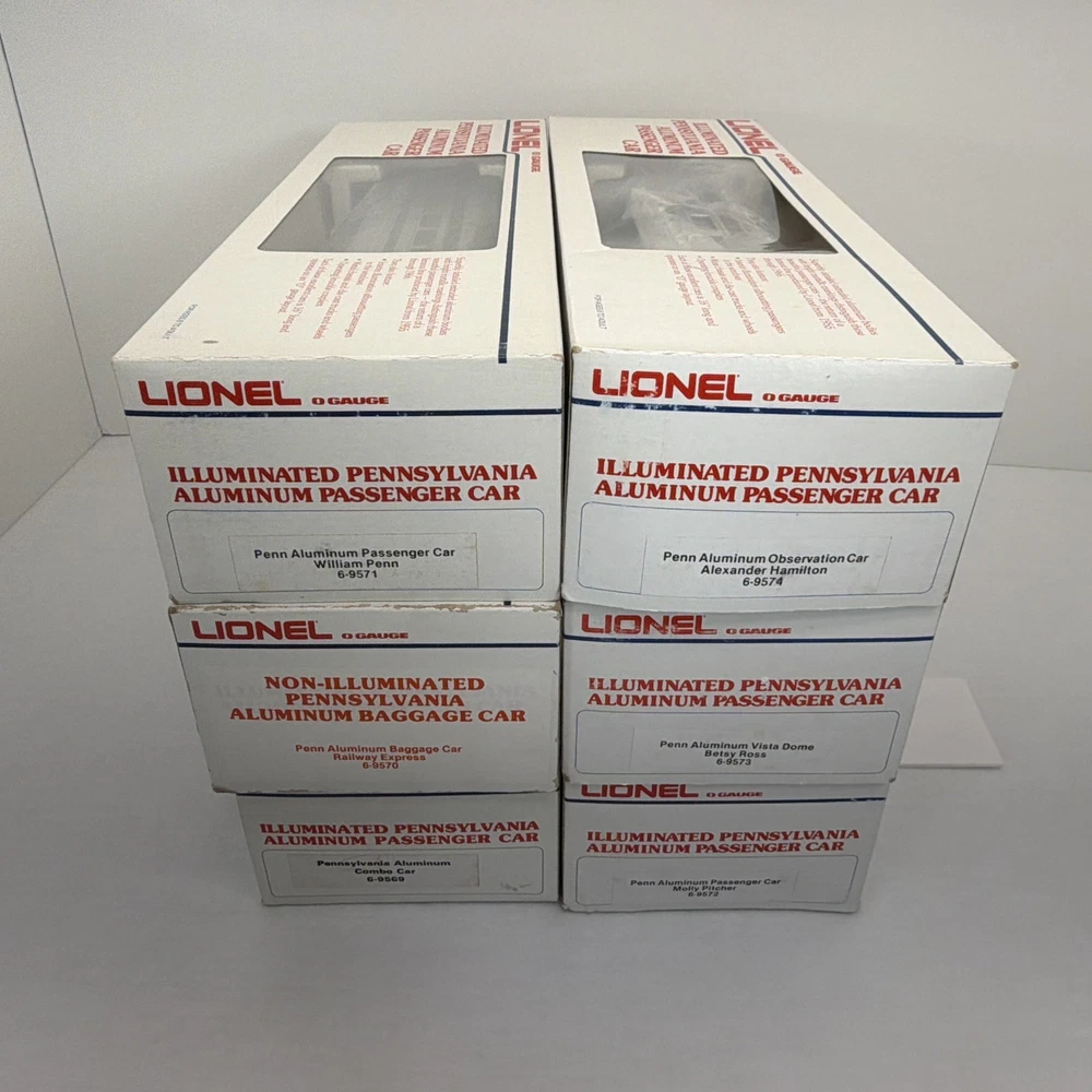 Lionel Pennsylvania 15” Aluminum 6-Car Passenger Set O Gauge New 6-9569 - 9574