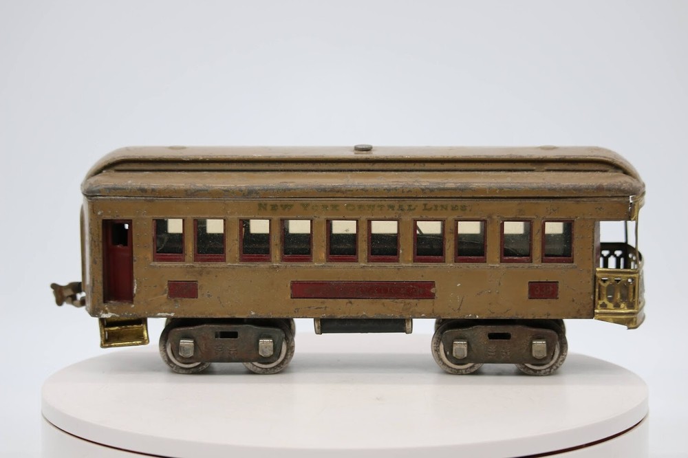 Lionel Prewar Standard Gauge All Metal New York Central Lines NY Pullman Car Look closely at the pictures to see further details. We ships USPS PLEASE see photos for detailed condition!! PLEASE LOOK AT THE PHOTOS CAREFULLY BEFORE PURCHASING!! If you are purchasing more than one item from us and would like combined shipping, PLEASE request an adjusted invoice from us while still in the cart and BEFORE paying. Ebay does not usually calculate combined shipping accurately and you might get overcharged. Please be aware that when we photograph items, we use lighting that will show the details well. Although we try to present the product as accurately as possible, the lighting may affect the overall look of the item by appearing lighter/darker or possibly a different hue than the actual item. Depending on the type of lighting you have in your home, there may be some differences between the photos and the actual item. If this is a concern of yours, please feel free to request additional photos made in natural lighting or ask for a more detailed description of the item PRIOR TO PURCHASE! PLEASE NOTE: We greatly appreciate your interest in our item for sale. We look forward to a pleasant, quick and satisfying transaction for everybody, so please note the following information before bidding. Thank you! ITEM DESCRIPTIONS: * We will try to describe items well and provide plenty of photos. Please review these carefully before bidding or purchasing. * Only the items pictured and described are what you will receive when purchased. * We will occasionally offer an item clearly marked "AS-IS". This means that we are not sure if it works because we are unable to test it for whatever reason. We will offer these at a discounted price then a similar "working" item. It is possible that these items will work fine, but it also is possible that these items are more useful for their parts. Please only bid on or purchase these items if you are well aware of this, as we will only provide refunds of actual item price (no shipping cost refunds) for these items. * If you have any questions that aren't addressed by the descriptions or photos, please feel free to ask before you bid. SHIPPING: * We usually do not offer shipping to international addresses, but ARE WILLING TO TAKE CONSIDERATIONS. * We try to pack items as carefully as possible, but damage may occur during shipping. If you receive an item that was damaged in shipping, please contact us and we will work with you to resolve the problem. * We will combine shipping costs for all items the same buyer purchases from us within 2 days. Please wait to pay for items until you're done shopping with us. Please contact us if you're expecting to buy more items from us, or to have us adjust the shipping costs. * We will usually ship items out within 24 hours of payment being received Sunday through Friday at noon. We will notify the buyer if there will be a delay in shipping for some reason. Please allow additional time for holidays and weekends when the post office is closed. If payment is received after noon (EST) on Friday, the item might not be shipped until the following Monday. * We do try to recycle shipping materials as much as possible. RETURNS: We abide by eBay's Money Back Guarantee. We definitely want our customers to be happy with their purchase! You may return an item within 30 days of receiving it with the following guidelines: * If the item is defective or damaged (unless we clearly marked the listing "AS-IS"), the buyer will receive a full refund after the buyer returns it and it is received by us. Customers who falsely claim their item is defective, damaged, or not as described in order to receive a full refund and free return shipping will be permanently blocked from making future purchases from us. * If the item is as described (including "AS-IS" items) and the buyer decides for any other reason than defective/damaged to return it, only the actual price of the item will be refunded once it has been returned and it is received by us. The buyer will be asked to pay all original and return shipping charges. This includes all reasons other than defective/damaged, including wrong size, wrong type, changed mind, etc. All "AS-IS" items will fall into this category of return. Please make sure the item is what you want before purchasing it. * Please contact us before initiating a refund request. FEEDBACK: We always leave feedback at the end of transaction. We consider the transaction to be over when we receive feedback from the buyer confirming the item arrived satisfactorily. If you are unsatisfied with your purchase please contact us before leaving neutral or negative feedback. WE APPRECIATE POSITIVE FEEDBACK IF YOU ARE SATISFIED WITH YOUR PURCHASE! THANK YOU FOR YOUR INTEREST IN THIS ITEM!