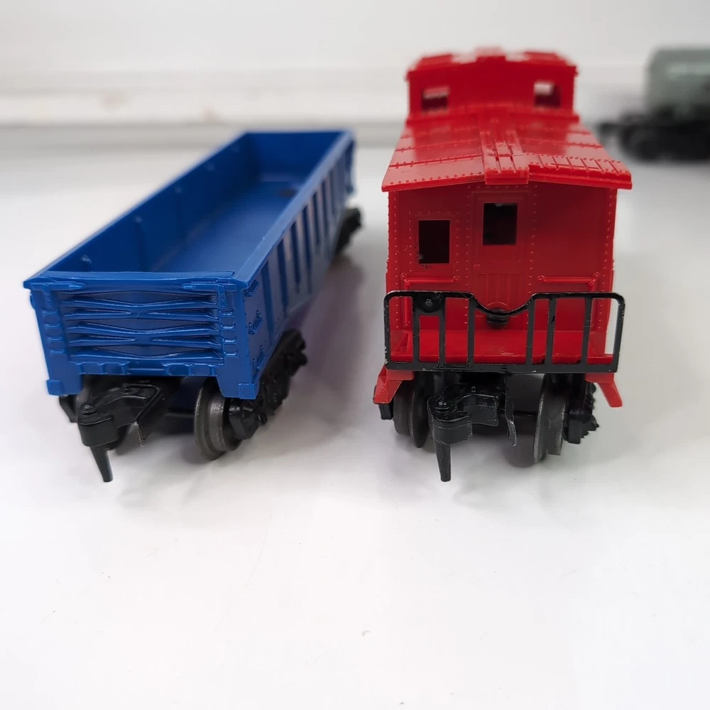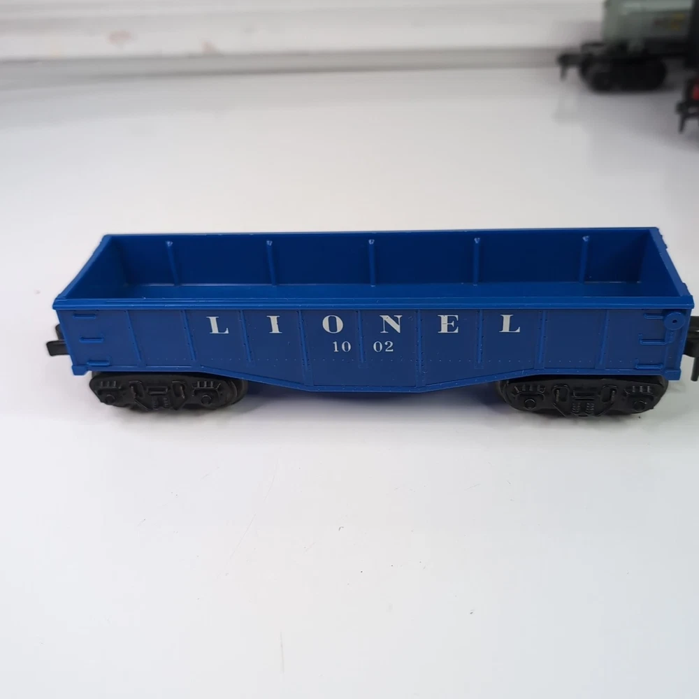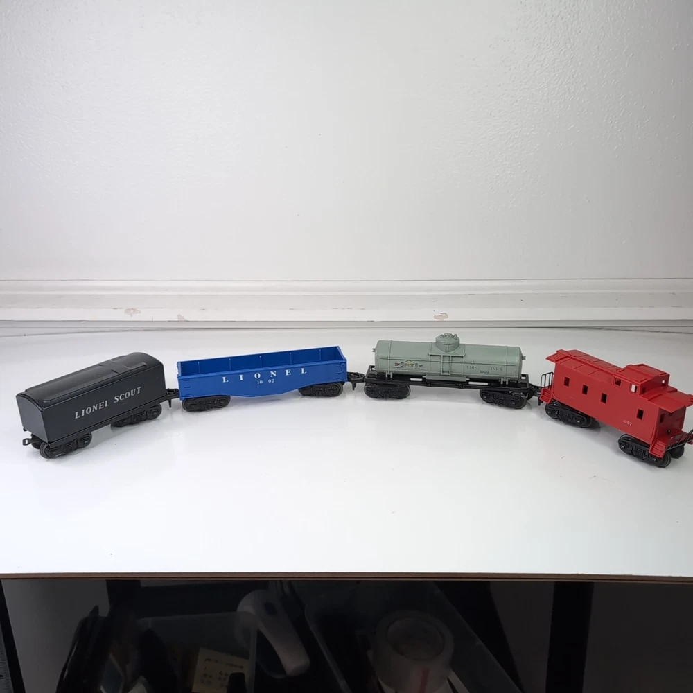 Lionel scout freight train cars. A total of four cars. The scout, cr 1002, car 1005 and caboose 1007. All in use condition. There are scratches on these I had some . Some of the lettering has faded. All the wheels work good.