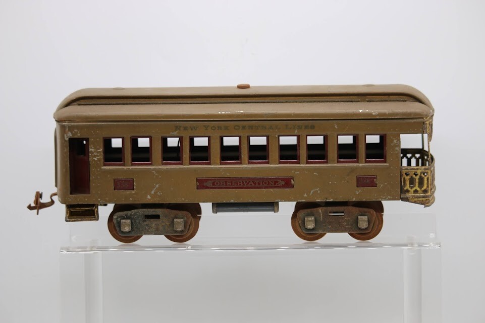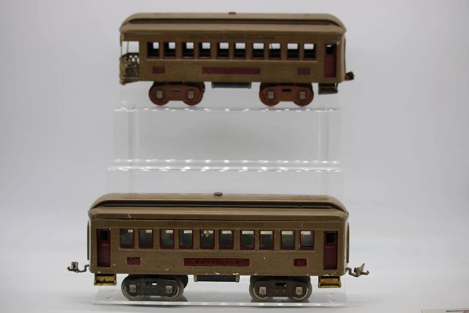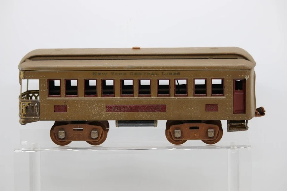 Lionel Standard Gauge Metal New York Central Lines Coach & Observation Cars Look closely at the pictures to see further details. We ships USPS PLEASE see photos for detailed condition!! There may be pieces that are missing or broken including, but not limited to, couplers, brake wheels, steps, ladders, railings, etc. May need detailed cleaning. PLEASE LOOK AT THE PHOTOS CAREFULLY BEFORE PURCHASING!! If you are purchasing more than one item from us and would like combined shipping, PLEASE request an adjusted invoice from us while still in the cart and BEFORE paying. Ebay does not usually calculate combined shipping accurately and you might get overcharged. Please be aware that when we photograph items, we use lighting that will show the details well. Although we try to present the product as accurately as possible, the lighting may affect the overall look of the item by appearing lighter/darker or possibly a different hue than the actual item. Depending on the type of lighting you have in your home, there may be some differences between the photos and the actual item. If this is a concern of yours, please feel free to request additional photos made in natural lighting or ask for a more detailed description of the item PRIOR TO PURCHASE! PLEASE NOTE: We greatly appreciate your interest in our item for sale. We look forward to a pleasant, quick and satisfying transaction for everybody, so please note the following information before bidding. Thank you! ITEM DESCRIPTIONS: * We will try to describe items well and provide plenty of photos. Please review these carefully before bidding or purchasing. * Only the items pictured and described are what you will receive when purchased. * We will occasionally offer an item clearly marked "AS-IS". This means that we are not sure if it works because we are unable to test it for whatever reason. We will offer these at a discounted price then a similar "working" item. It is possible that these items will work fine, but it also is possible that these items are more useful for their parts. Please only bid on or purchase these items if you are well aware of this, as we will only provide refunds of actual item price (no shipping cost refunds) for these items. * If you have any questions that aren't addressed by the descriptions or photos, please feel free to ask before you bid. SHIPPING: * We usually do not offer shipping to international addresses, but ARE WILLING TO TAKE CONSIDERATIONS. * We try to pack items as carefully as possible, but damage may occur during shipping. If you receive an item that was damaged in shipping, please contact us and we will work with you to resolve the problem. * We will combine shipping costs for all items the same buyer purchases from us within 2 days. Please wait to pay for items until you're done shopping with us. Please contact us if you're expecting to buy more items from us, or to have us adjust the shipping costs. * We will usually ship items out within 24 hours of payment being received Sunday through Friday at noon. We will notify the buyer if there will be a delay in shipping for some reason. Please allow additional time for holidays and weekends when the post office is closed. If payment is received after noon (EST) on Friday, the item might not be shipped until the following Monday. * We do try to recycle shipping materials as much as possible. RETURNS: We abide by eBay's Money Back Guarantee. We definitely want our customers to be happy with their purchase! You may return an item within 30 days of receiving it with the following guidelines: * If the item is defective or damaged (unless we clearly marked the listing "AS-IS"), the buyer will receive a full refund after the buyer returns it and it is received by us. Customers who falsely claim their item is defective, damaged, or not as described in order to receive a full refund and free return shipping will be permanently blocked from making future purchases from us. * If the item is as described (including "AS-IS" items) and the buyer decides for any other reason than defective/damaged to return it, only the actual price of the item will be refunded once it has been returned and it is received by us. The buyer will be asked to pay all original and return shipping charges. This includes all reasons other than defective/damaged, including wrong size, wrong type, changed mind, etc. All "AS-IS" items will fall into this category of return. Please make sure the item is what you want before purchasing it. * Please contact us before initiating a refund request. FEEDBACK: We always leave feedback at the end of transaction. We consider the transaction to be over when we receive feedback from the buyer confirming the item arrived satisfactorily. If you are unsatisfied with your purchase please contact us before leaving neutral or negative feedback. WE APPRECIATE POSITIVE FEEDBACK IF YOU ARE SATISFIED WITH YOUR PURCHASE! THANK YOU FOR YOUR INTEREST IN THIS ITEM!