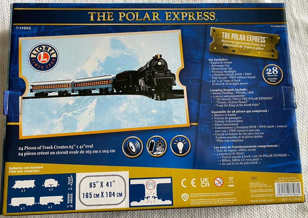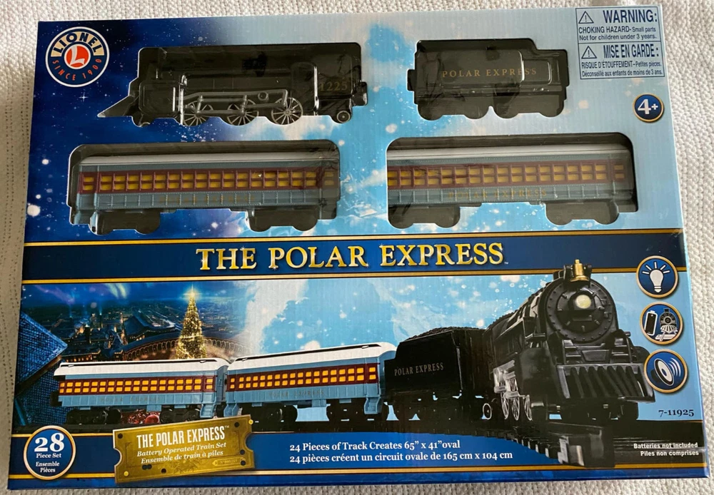 This Lionel The Polar Express battery operated train set includes 28 pieces and features a limited edition sound function. The set includes a passenger car, observation car, tender, and engine, all made of durable plastic and designed for remote control. The set is perfect for model railroad enthusiasts of all ages, with a recommended age level of 4+ years. The set is part of the iconic The Polar Express theme and is a great addition to any collection. The O gauge train set is manufactured in 2019 and is not considered vintage. The set is perfect for those who enjoy collecting model trains and creating their own unique model railroad.